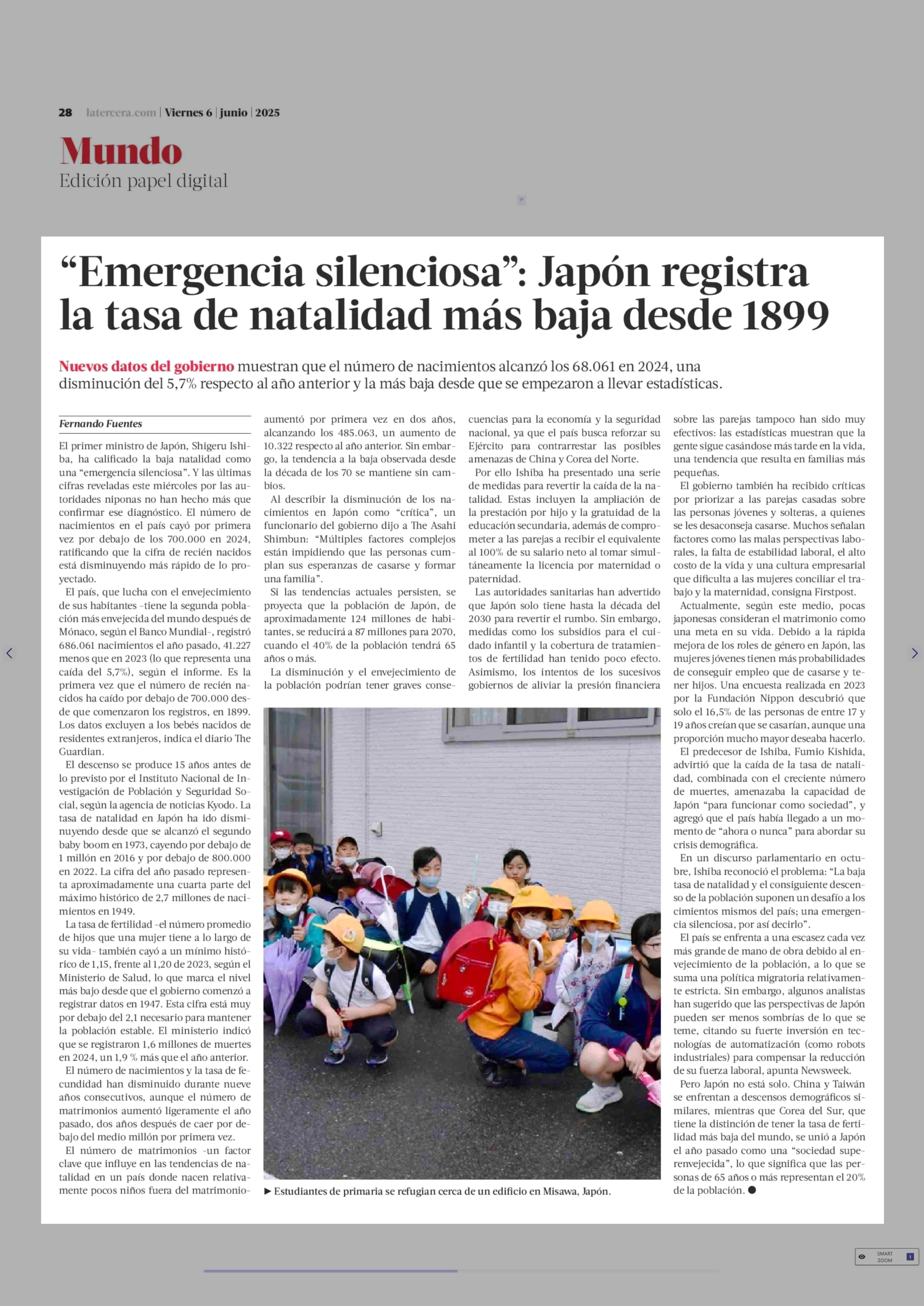 Título: “Emergencia silenciosa”: Japón registra la tasa de natalidad más baja desde 1899
