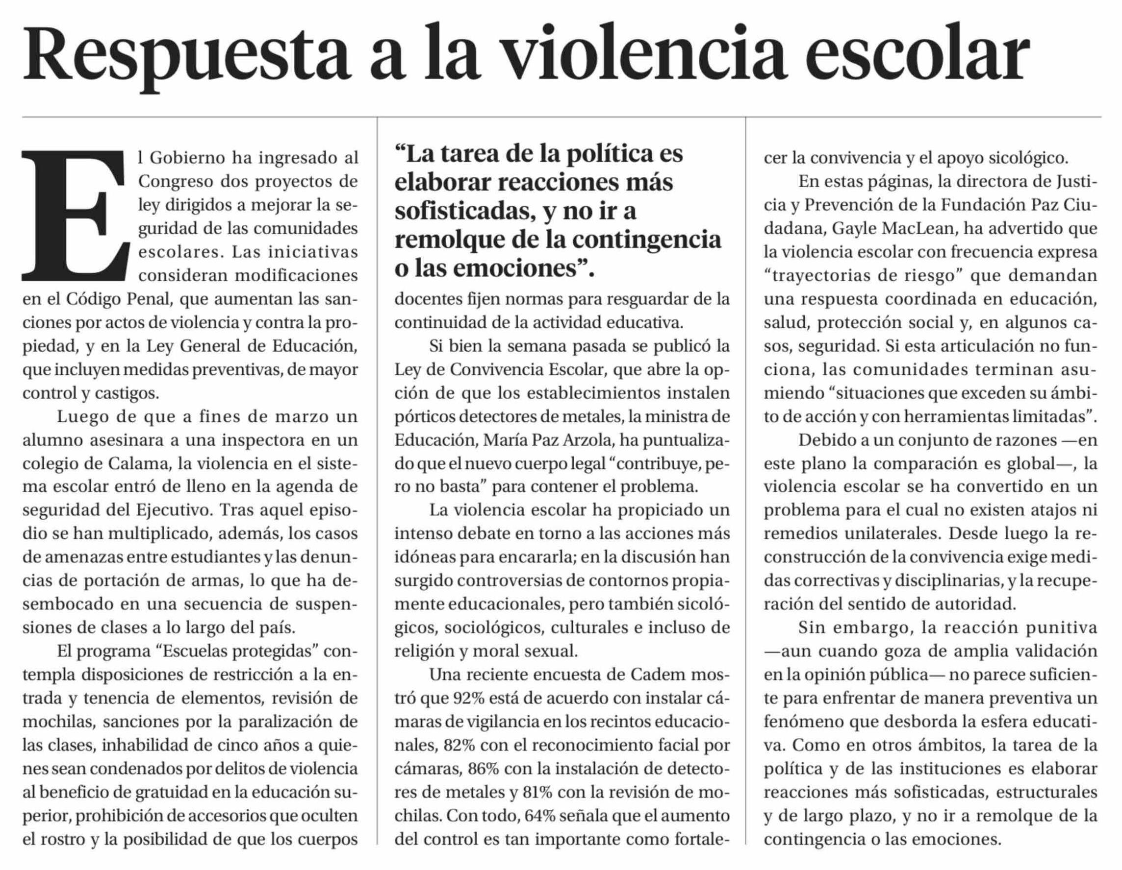 Editorial: Respuesta a la violencia escolar