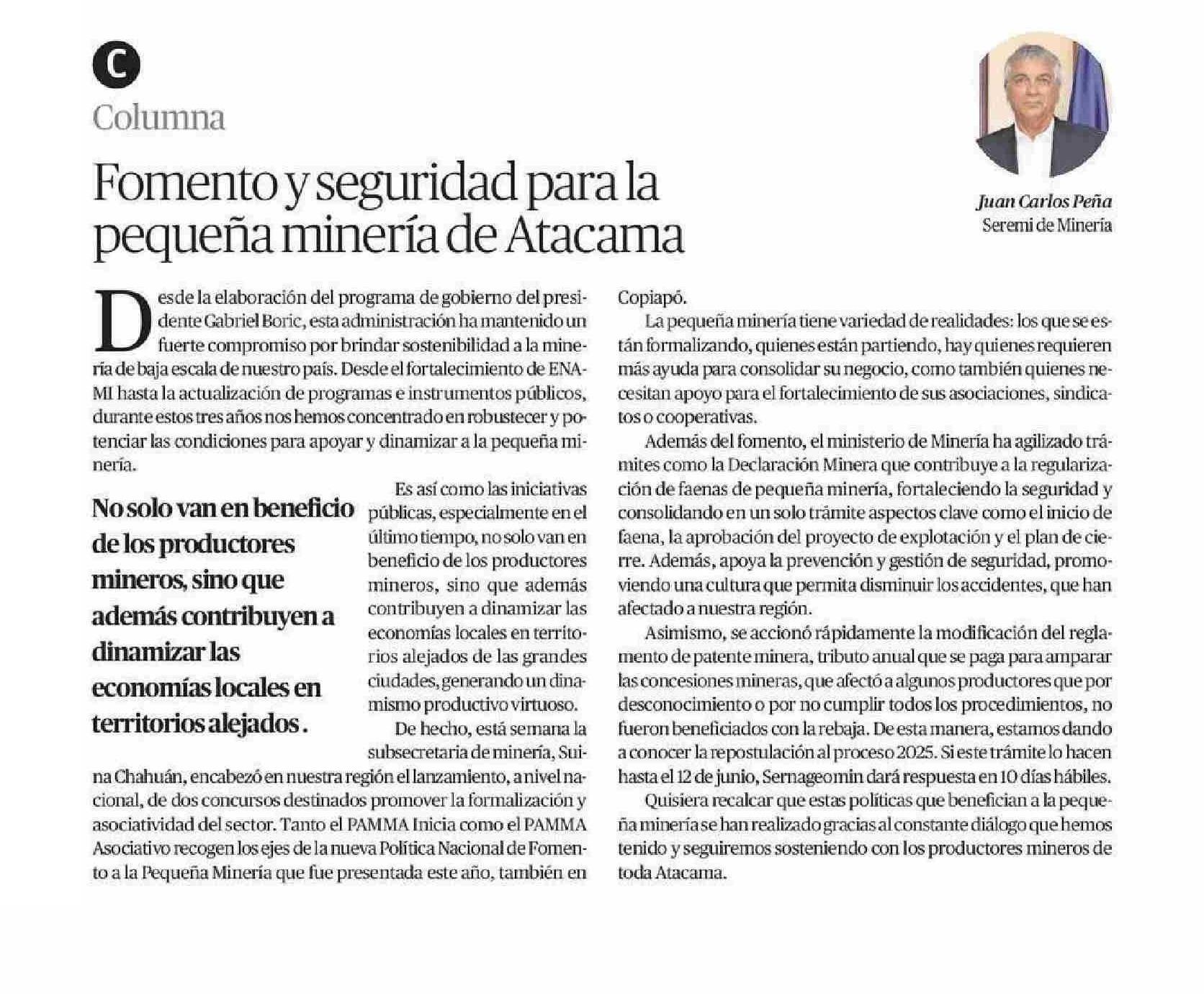 Fomento y seguridad para la pequeña minería de Atacama 25-05-2025 El Diario de Atacama |