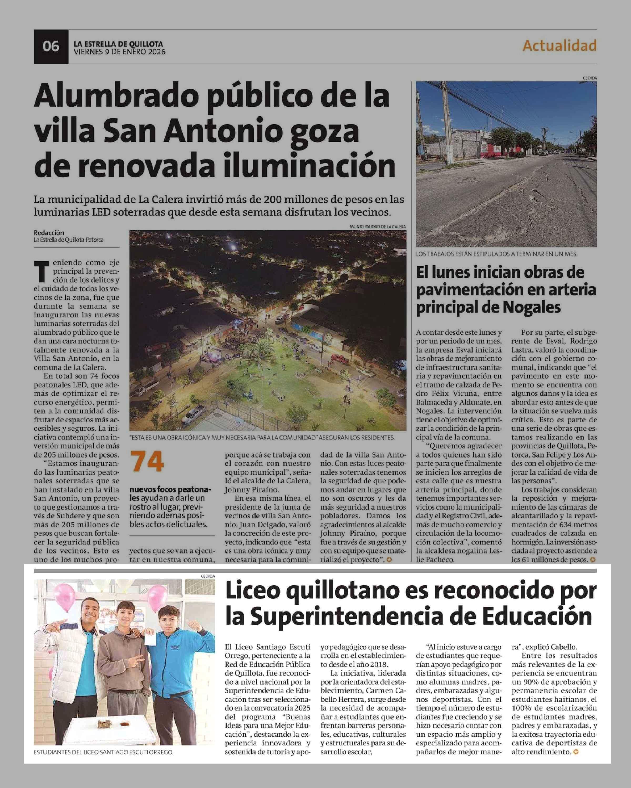 Liceo quillotano es reconocido por la Superintendencia de Educación 09-01-2026 La Estrella de Quillota |