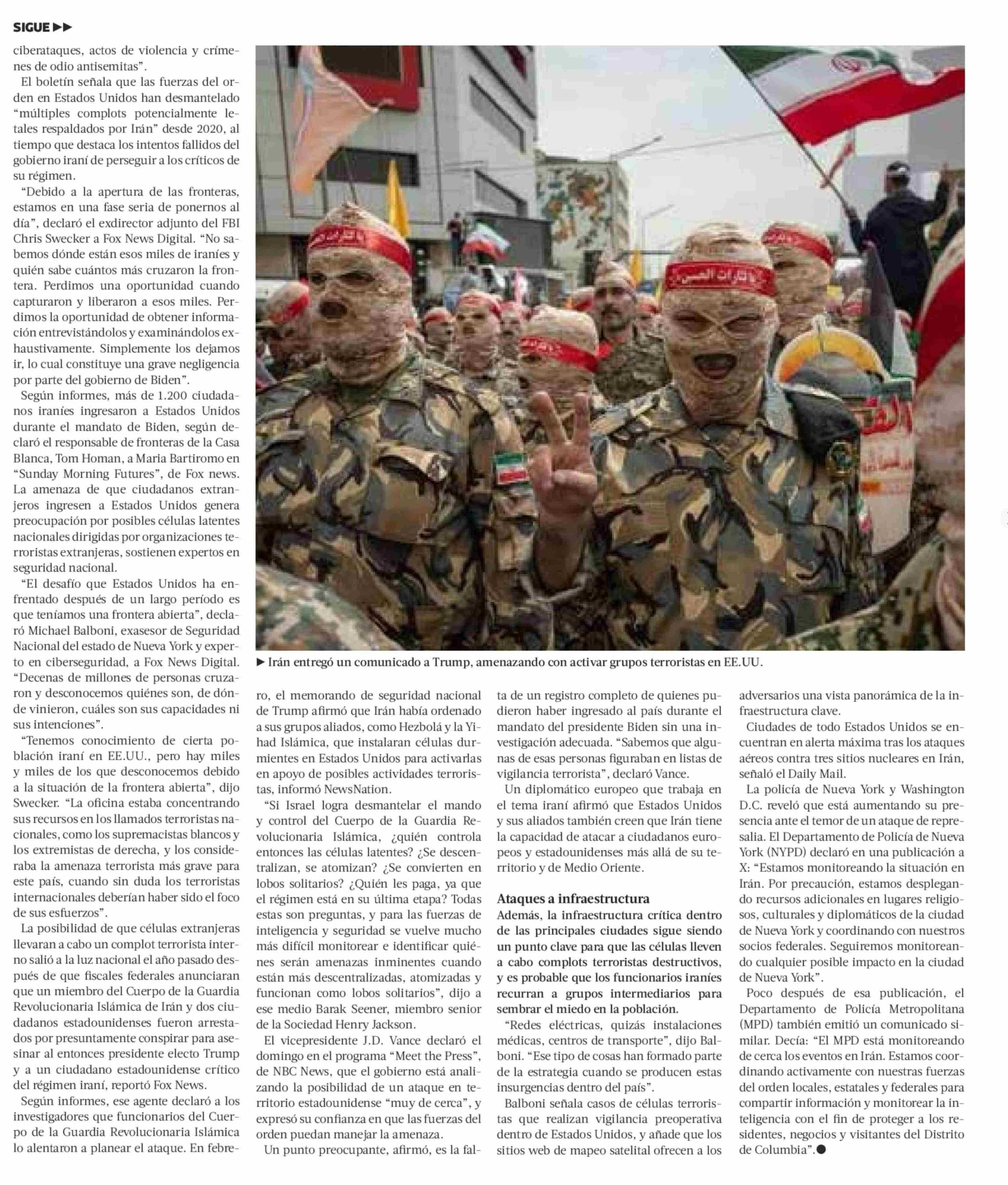 Amenaza latente: el riesgo de las “células durmientes” dentro de EE.UU. 24-06-2025 La Tercera |
