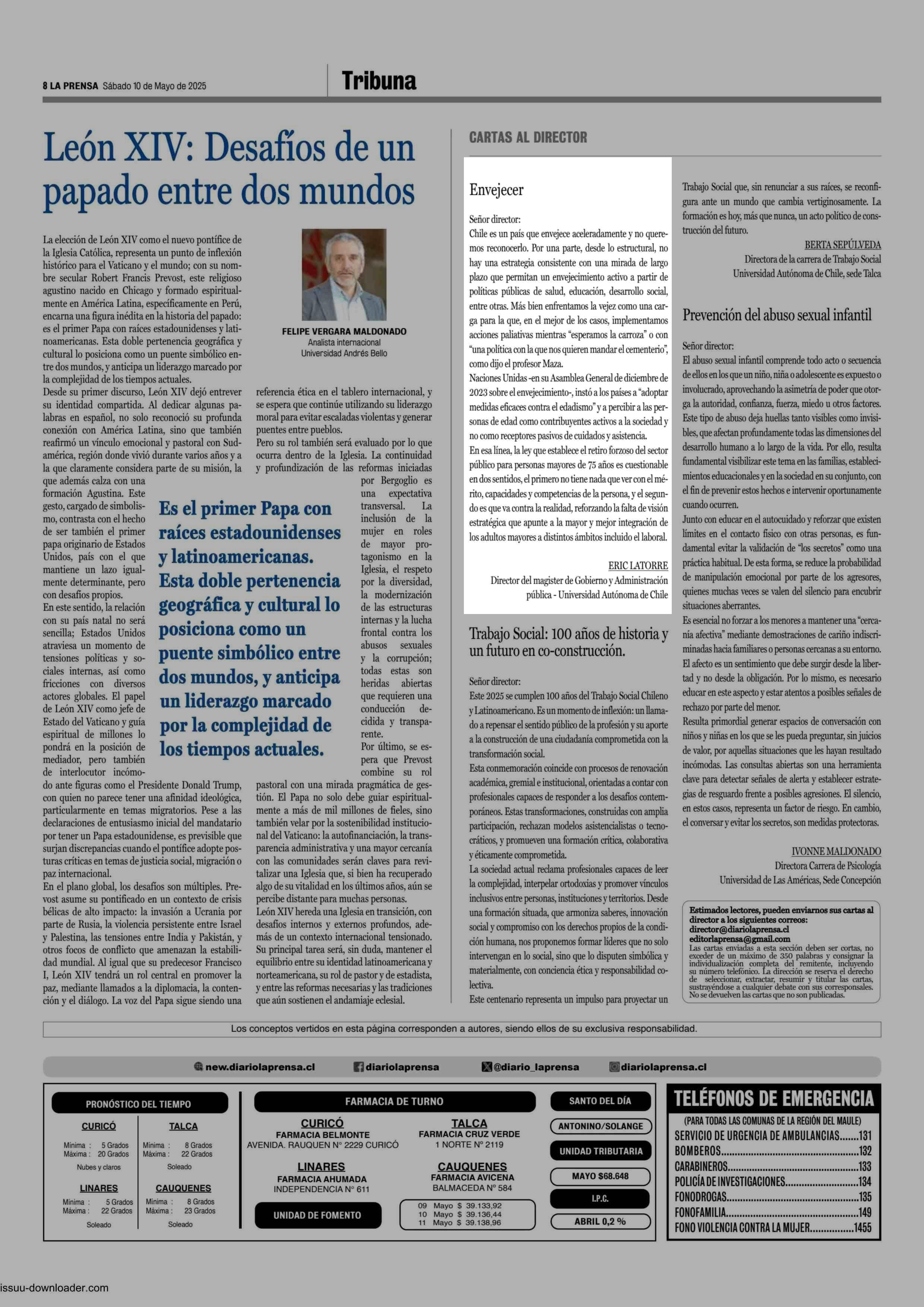 CARTAS: Envejecer 10-05-2025 La Prensa de Curicó |
