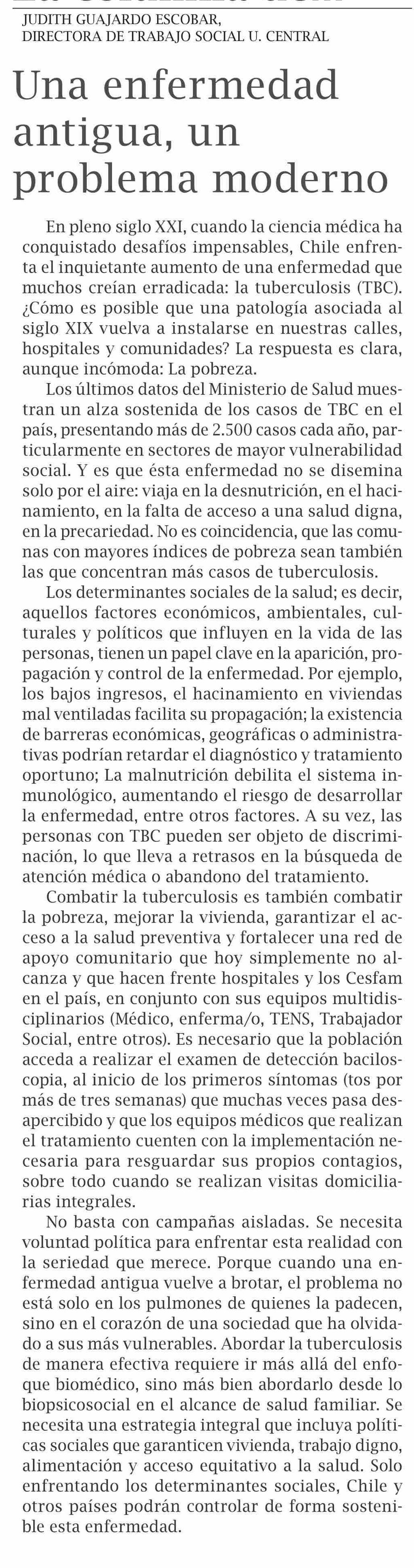Título: Columnas de Opinión: Una enfermedad antigua, un problema moderno
