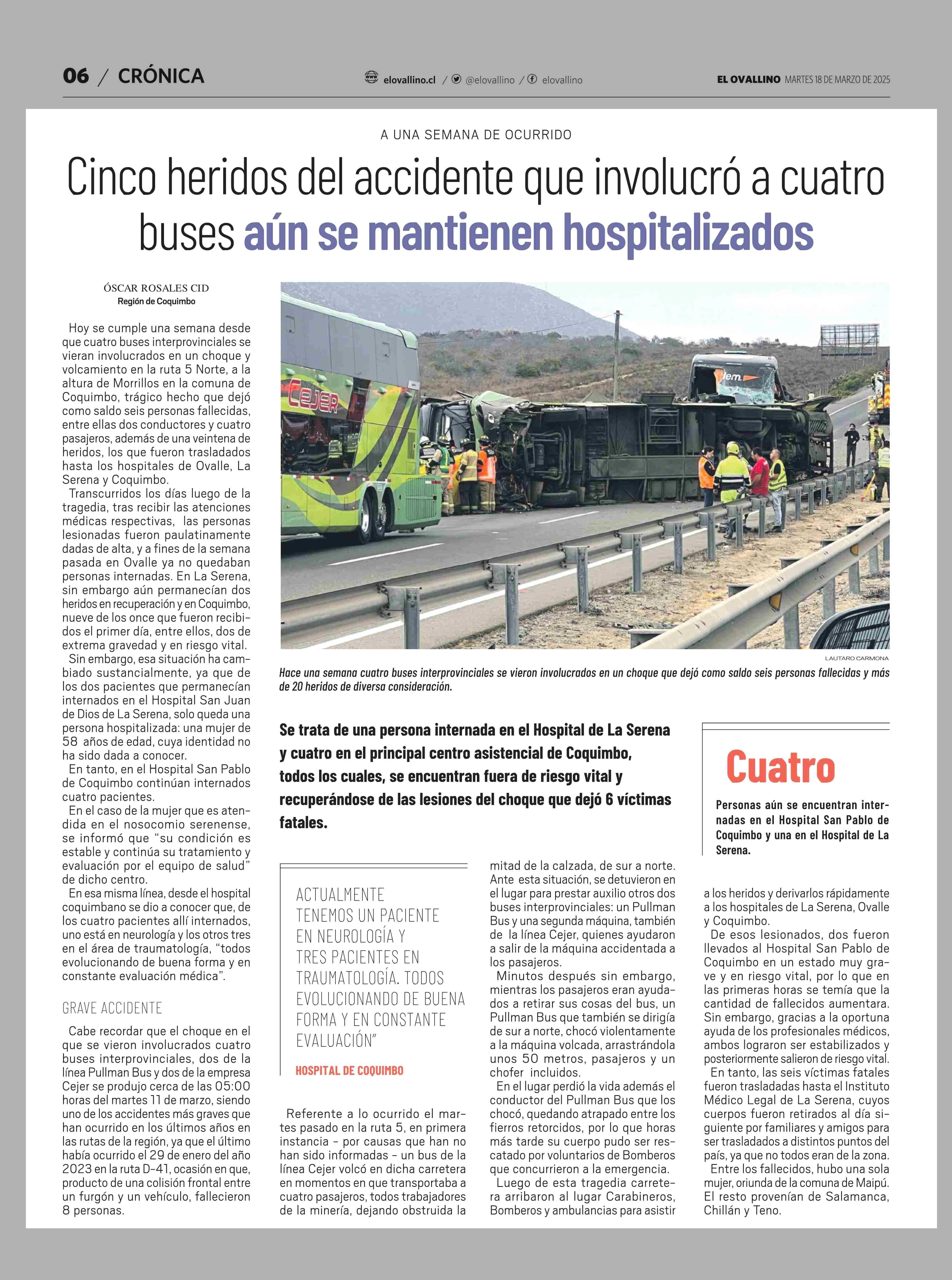 Título: Cinco heridos del accidente que involucró a cuatro buses aún se mantienen hospitalizados