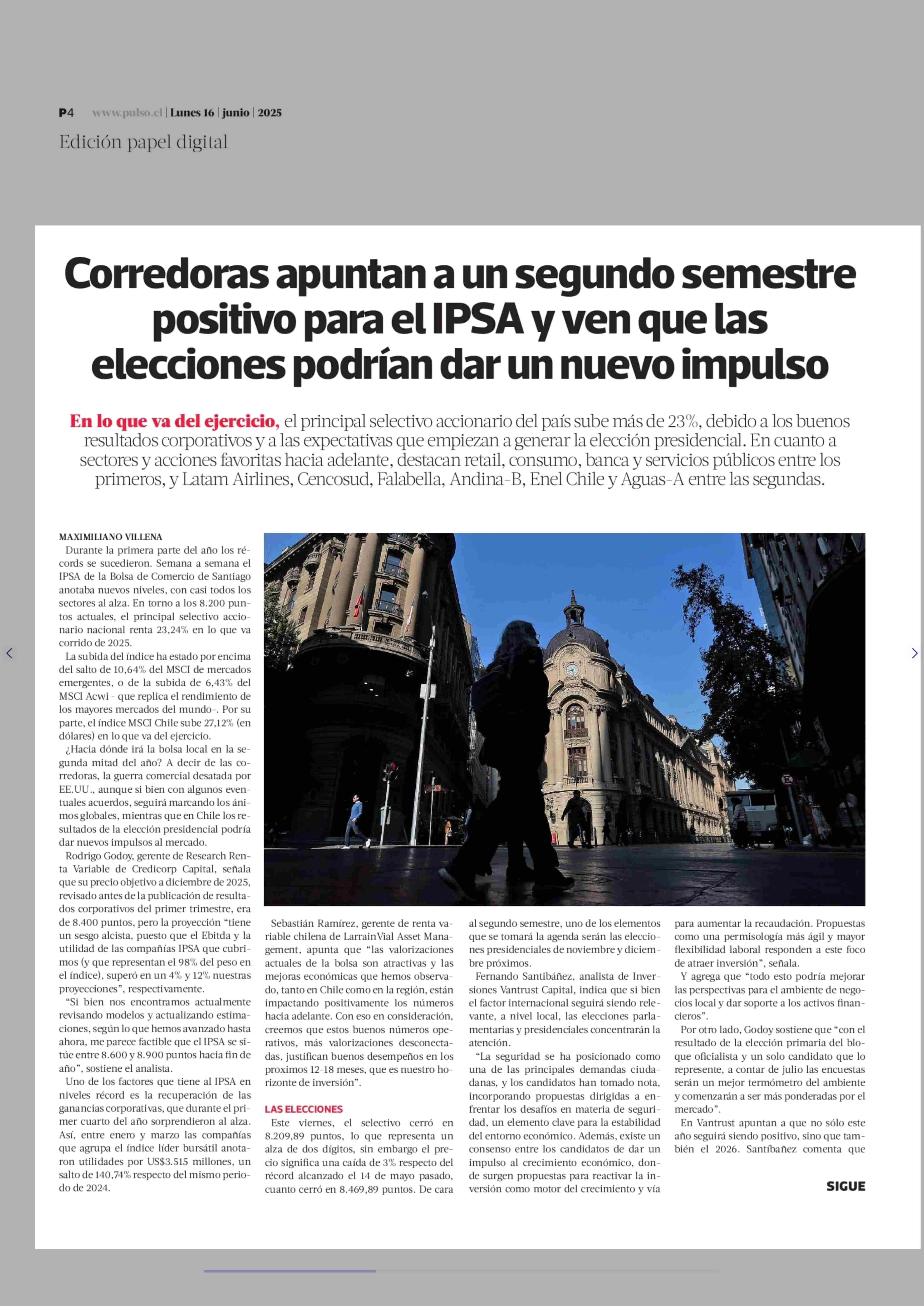Título: Corredoras apuntan a un segundo semestre positivo para el IPSA y ven que las elecciones podrían dar un nuevo impulso