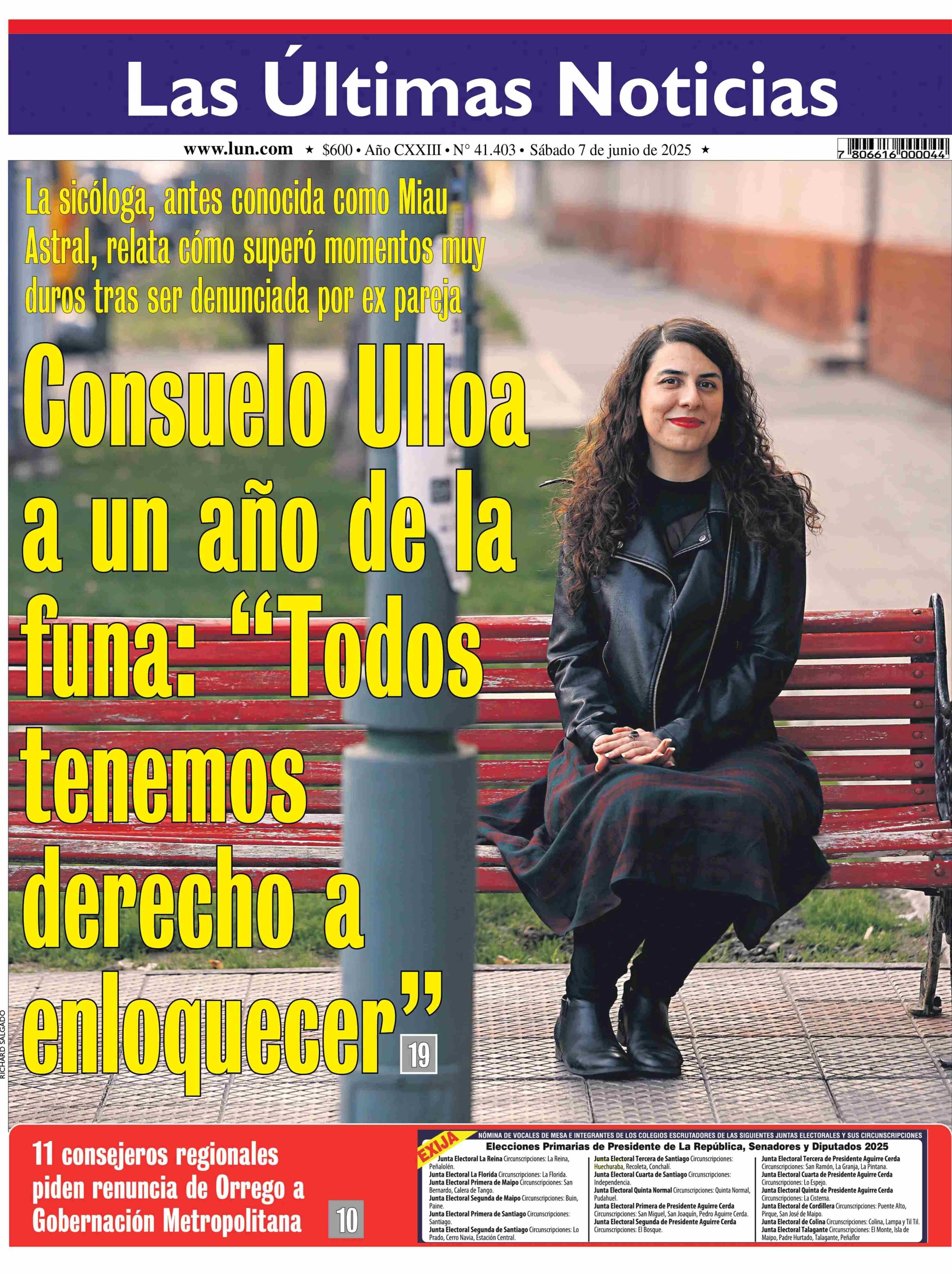 PORTADA LAS ÚLTIMAS NOTICIAS - CHILE 07-06-2025 Las Últimas Noticias |