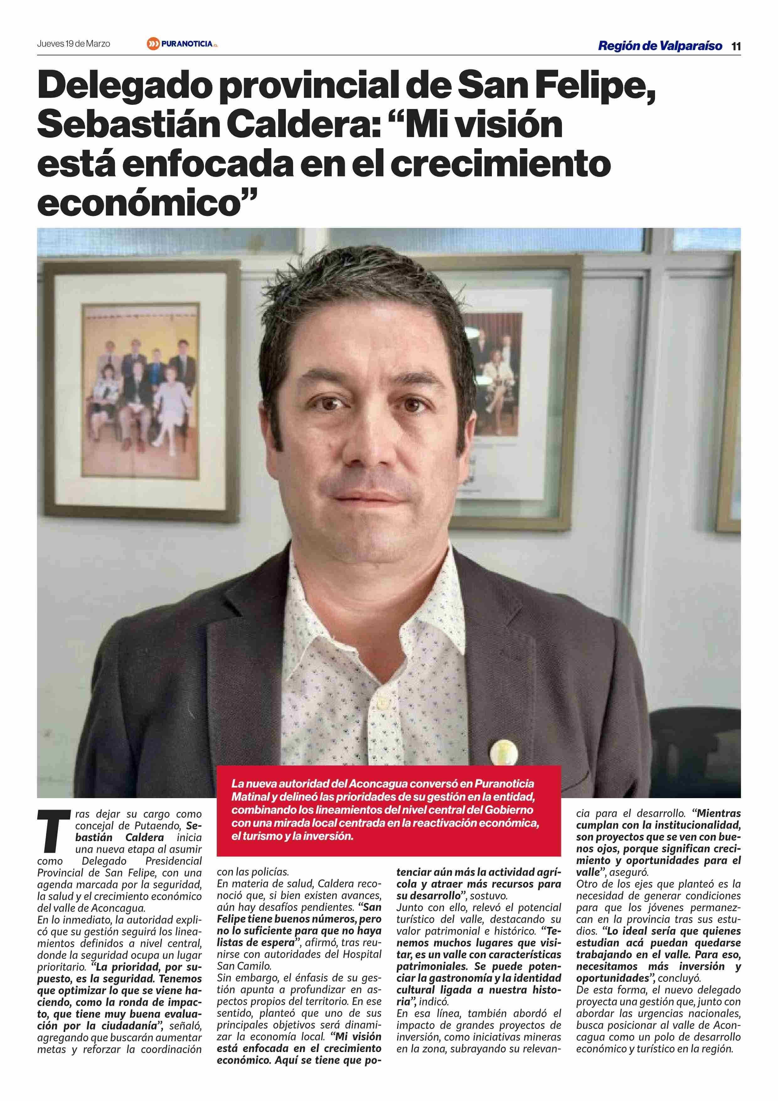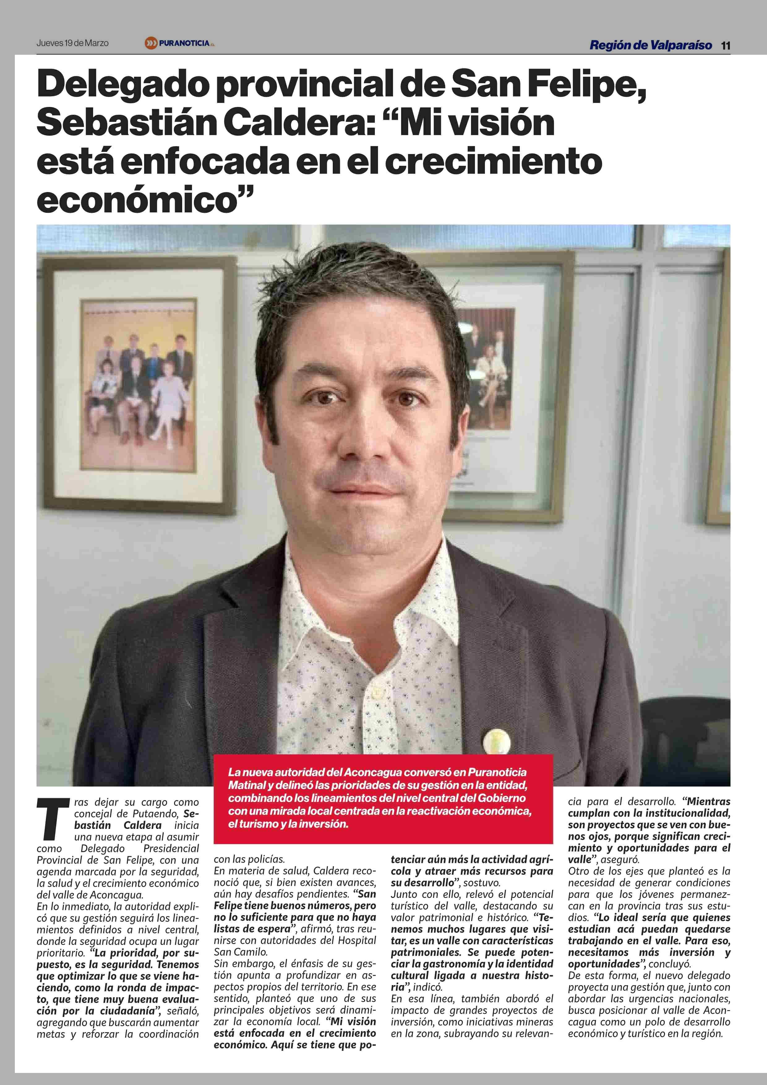 Título: Delegado provincial de San Felipe, Sebastián Caldera: “Mi visión esta enfocada en el crecimiento económico”