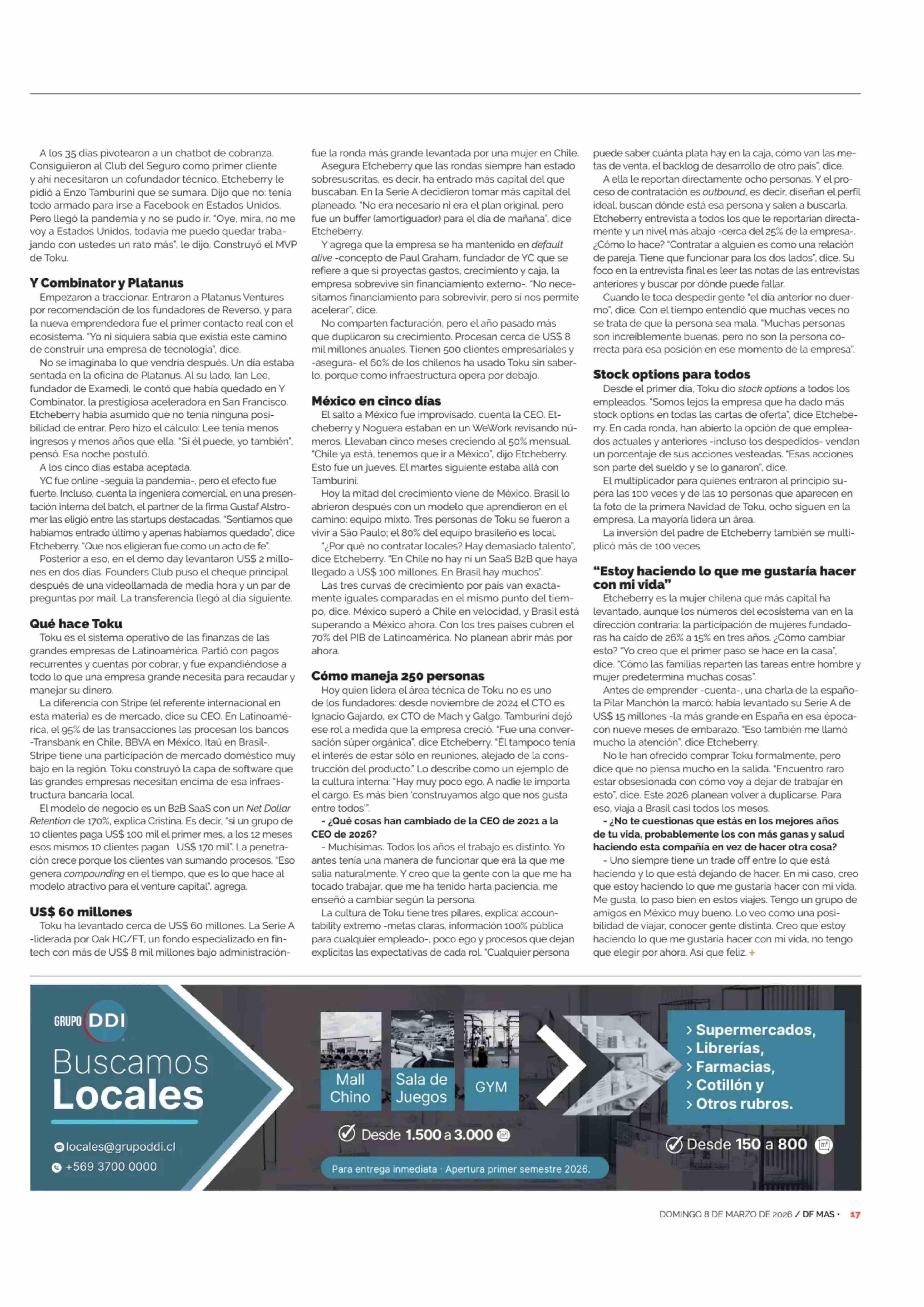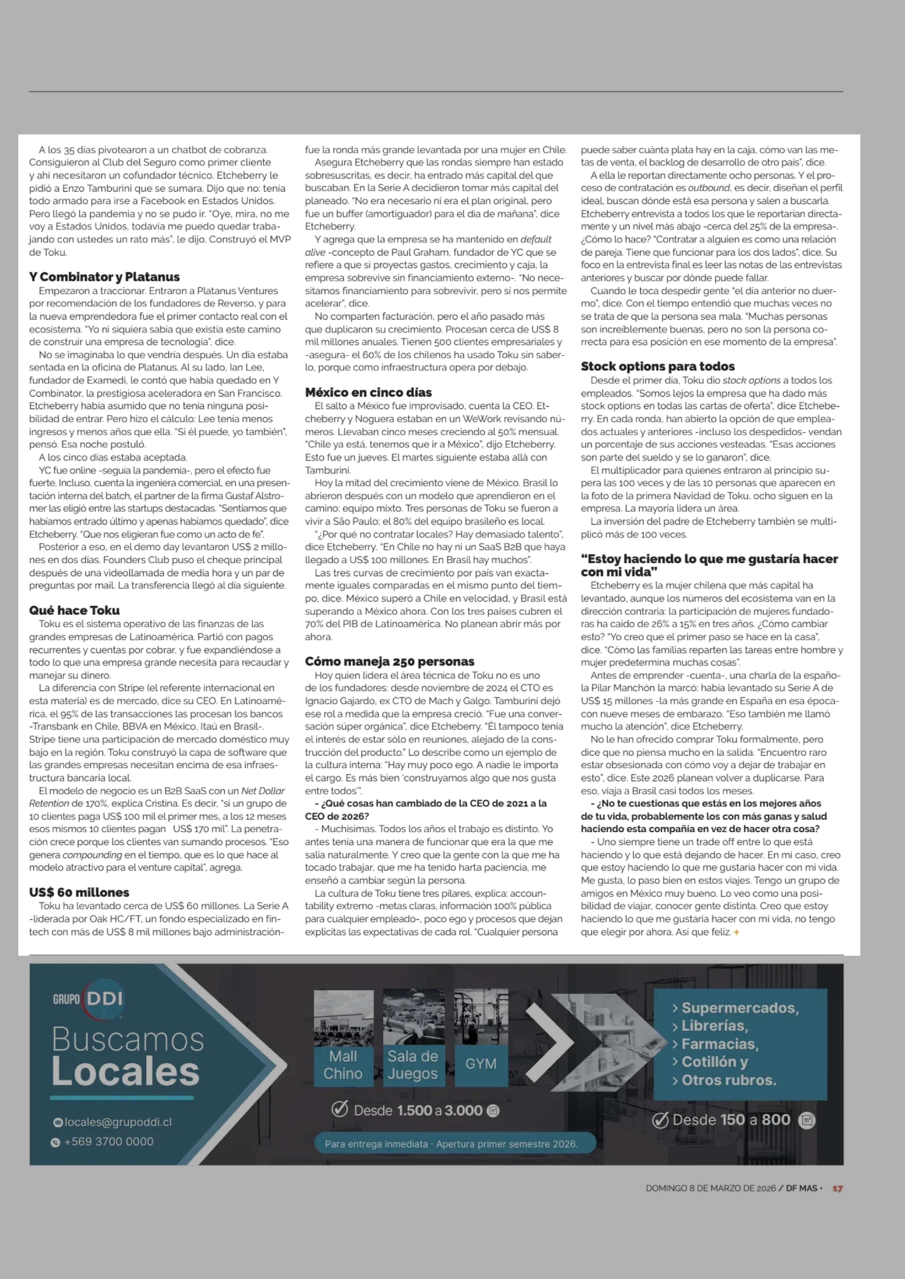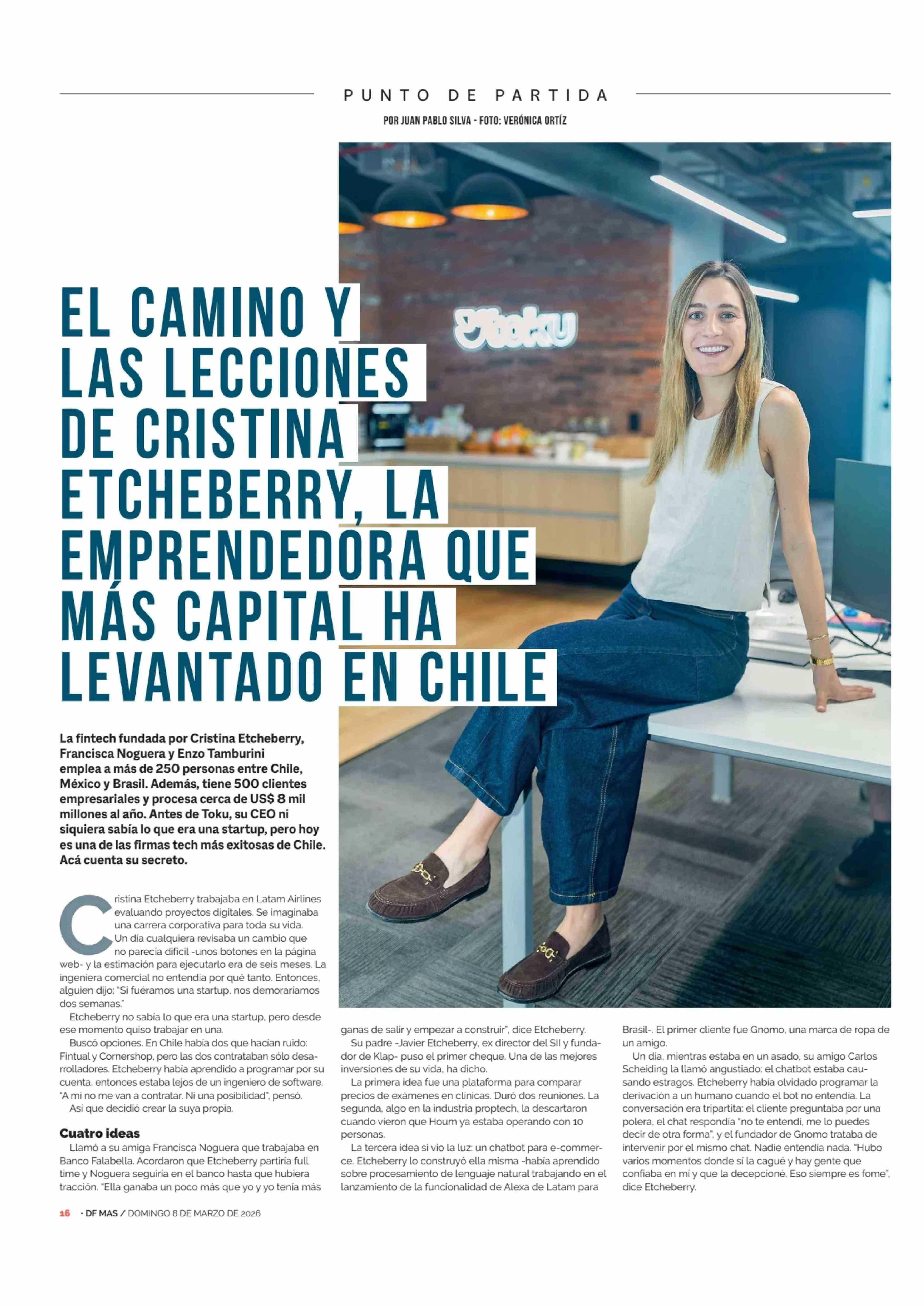 EL CAMINO Y LAS LECCIONES DE CRISTINA ETCHEBERRY, LA EMPRENDEDORA QUE MÁS CAPITAL HA LEVANTADO EN CHILE 08-03-2026 Diario Financiero |