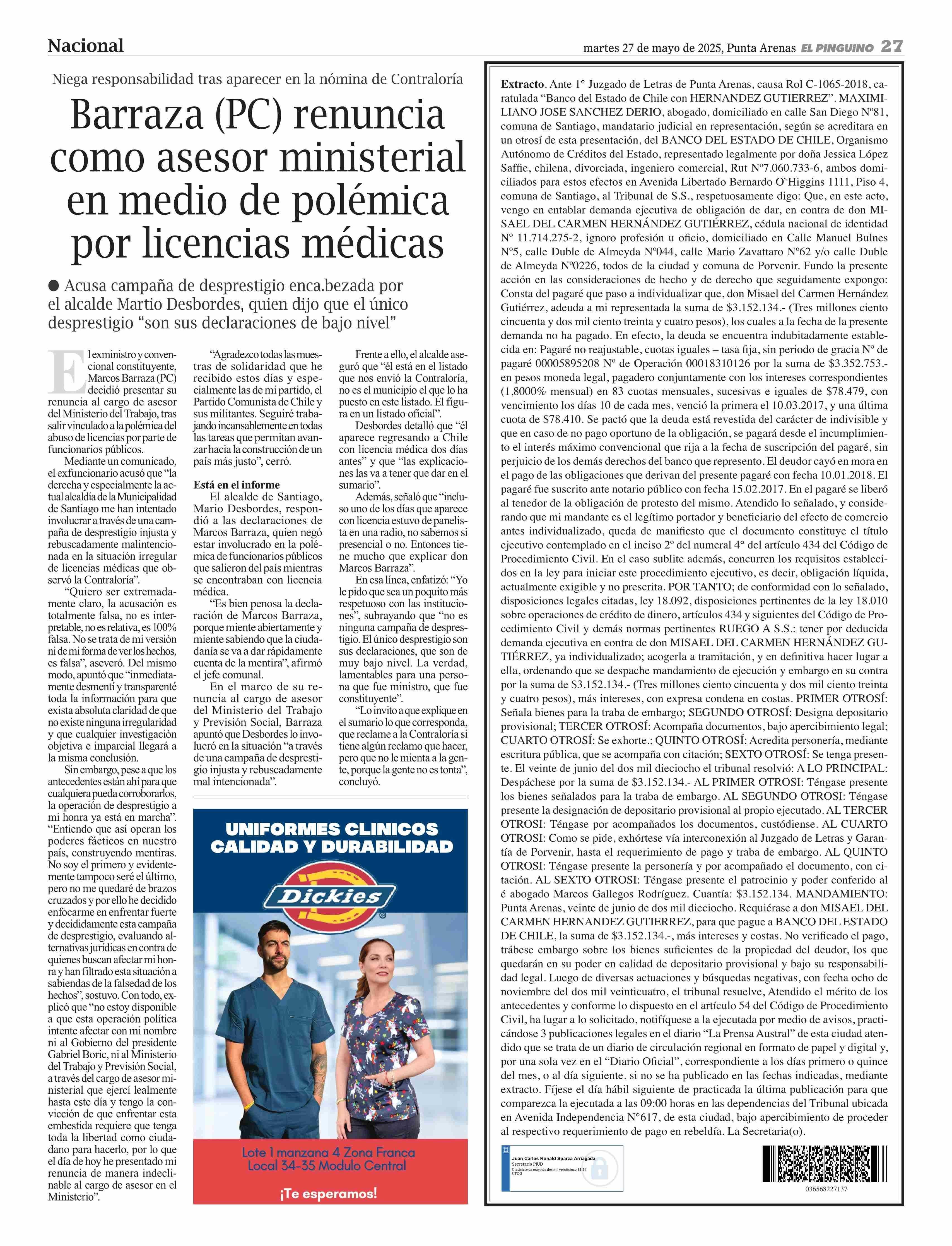 Barraza (PC) renuncia como asesor ministerial en medio de polémica por licencias médicas 27-05-2025 El Pingüino |