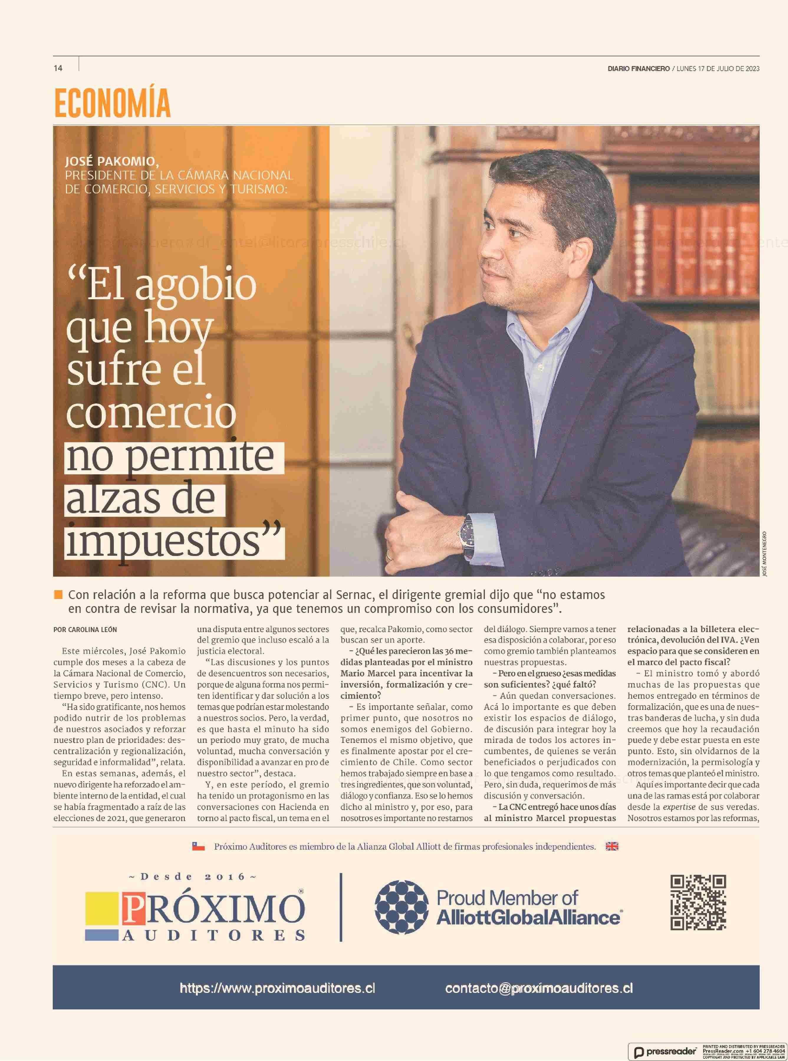 “El agobio que hoy sufre el comercio no permite alzas de impuestos" 17-07-2023 Diario Financiero |
