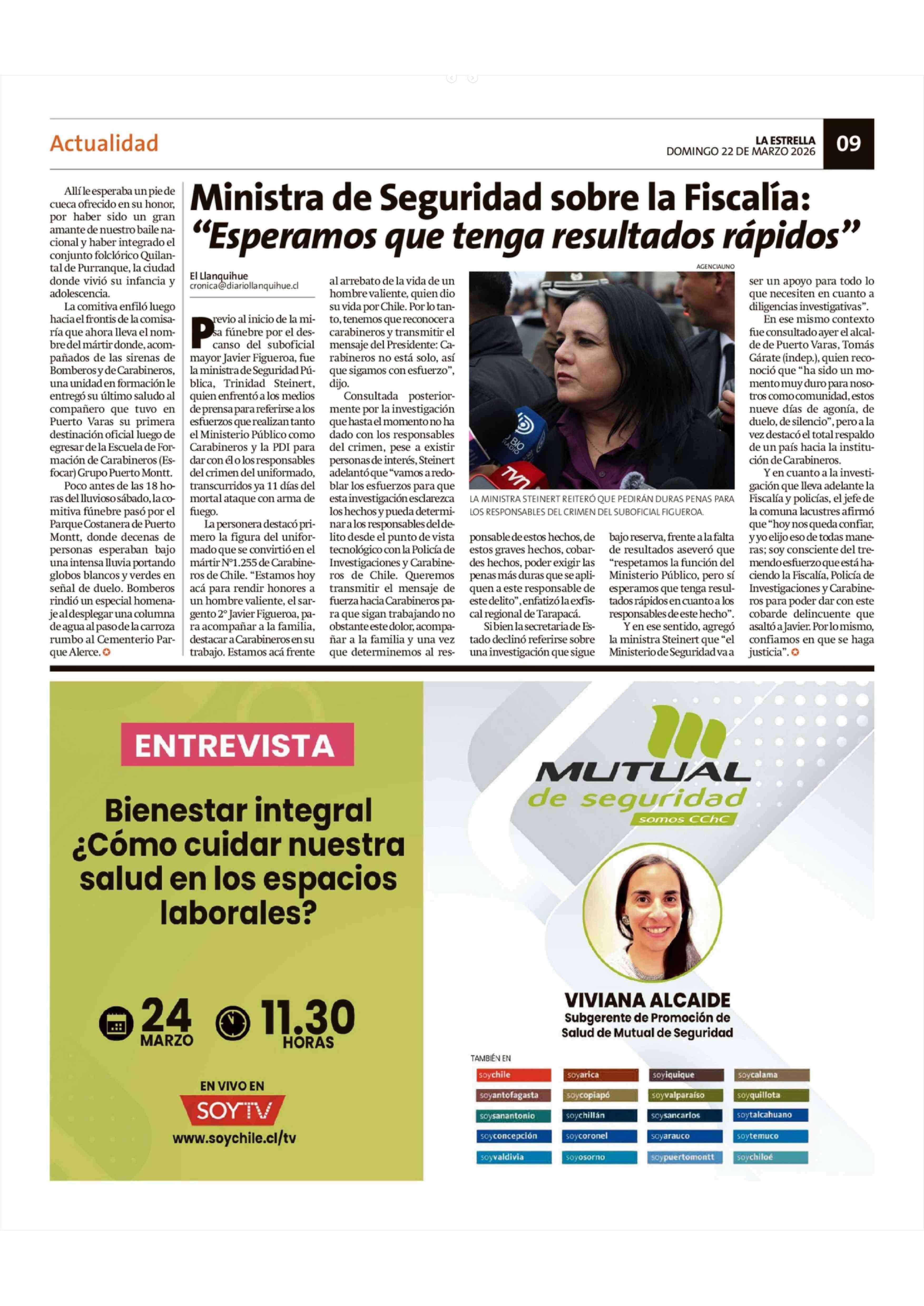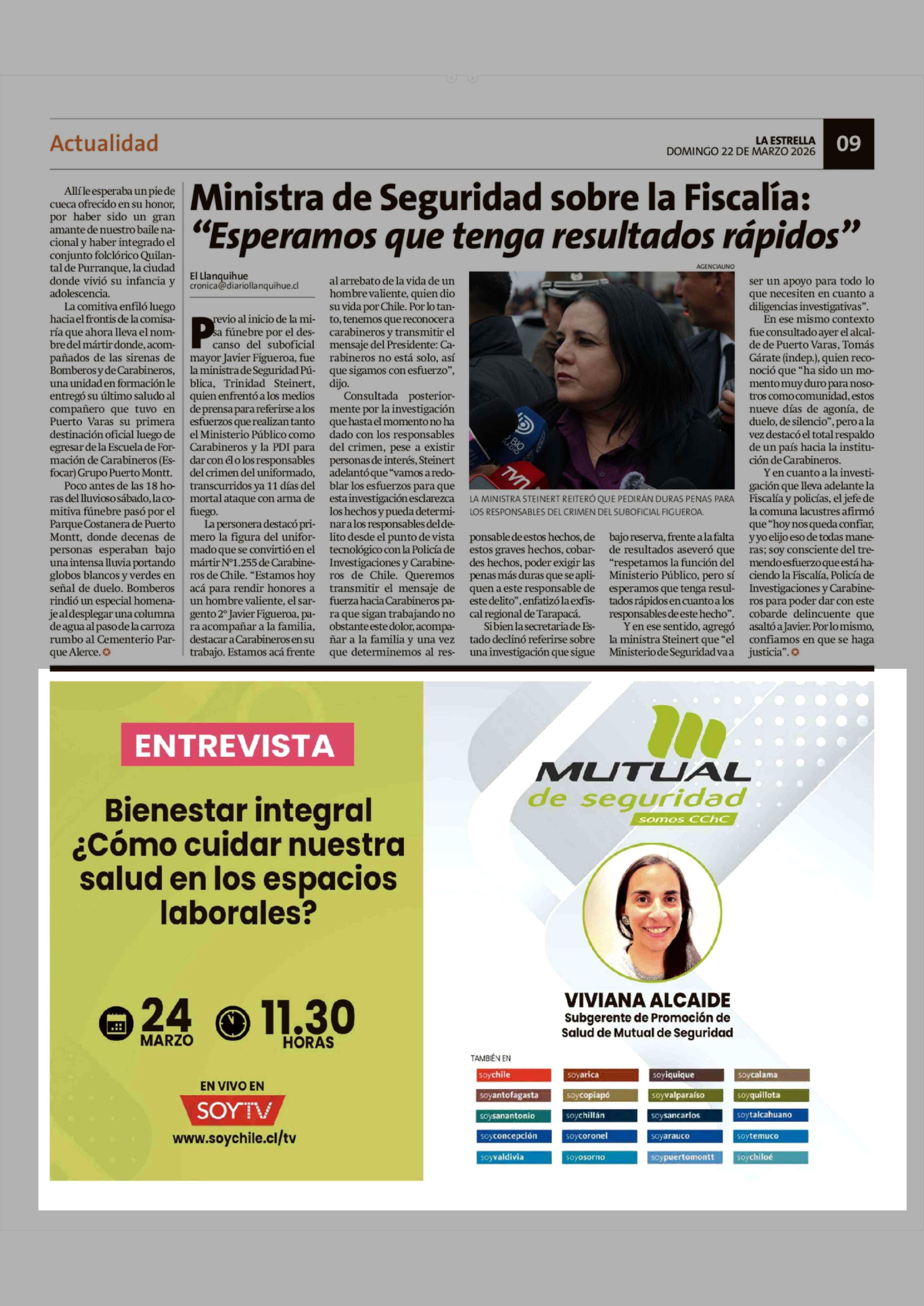 Aviso Publicitario: MUTUAL DE SEGURIDAD 22-03-2026 La Estrella de Chiloé |