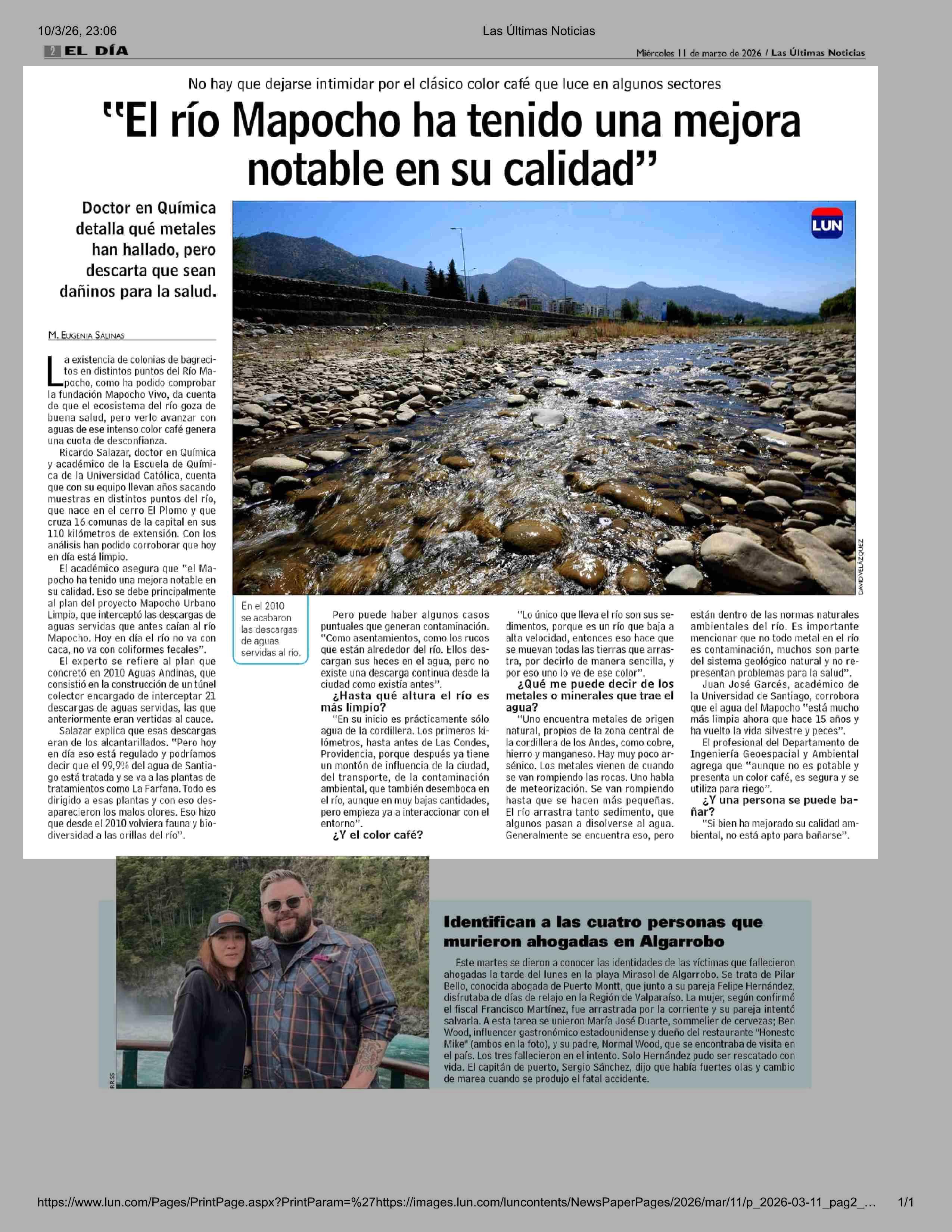 Título: “El río Mapocho ha tenido una mejora notable en su calidad?”
