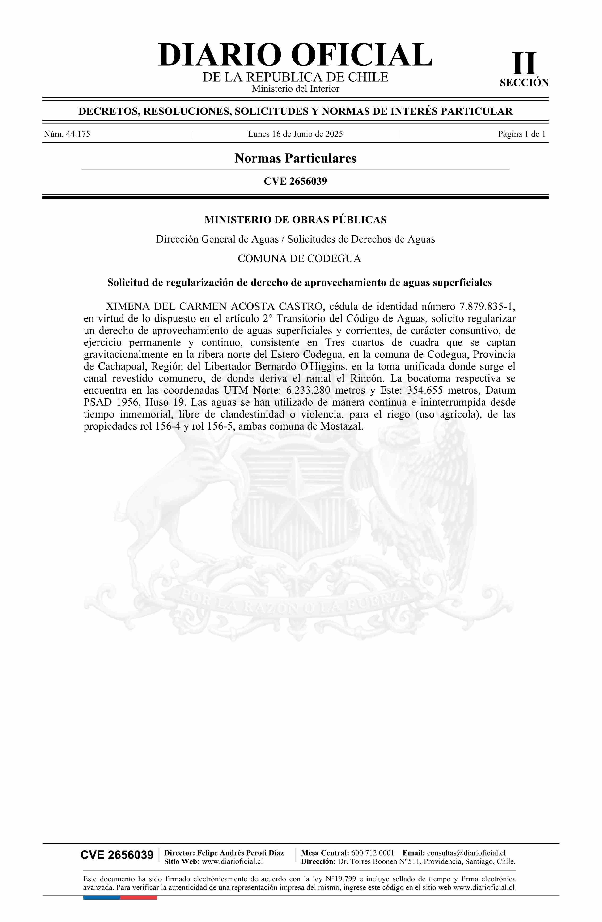 Solicitud Acosta Castro Ximena del Carmen 16-06-2025 Diario Oficial Edición Electrónica |