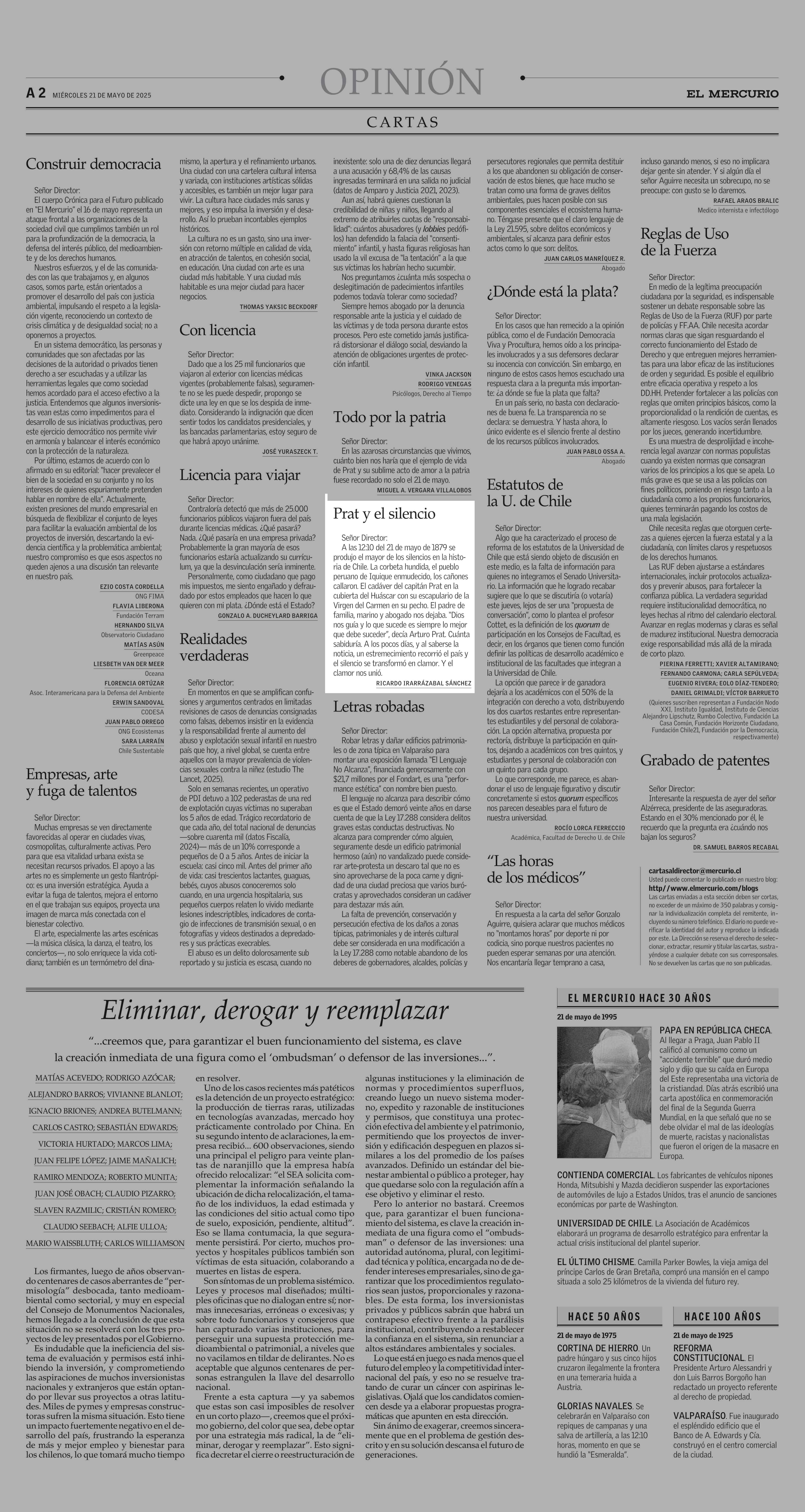CARTAS: Prat y el silencio 21-05-2025 El Mercurio |