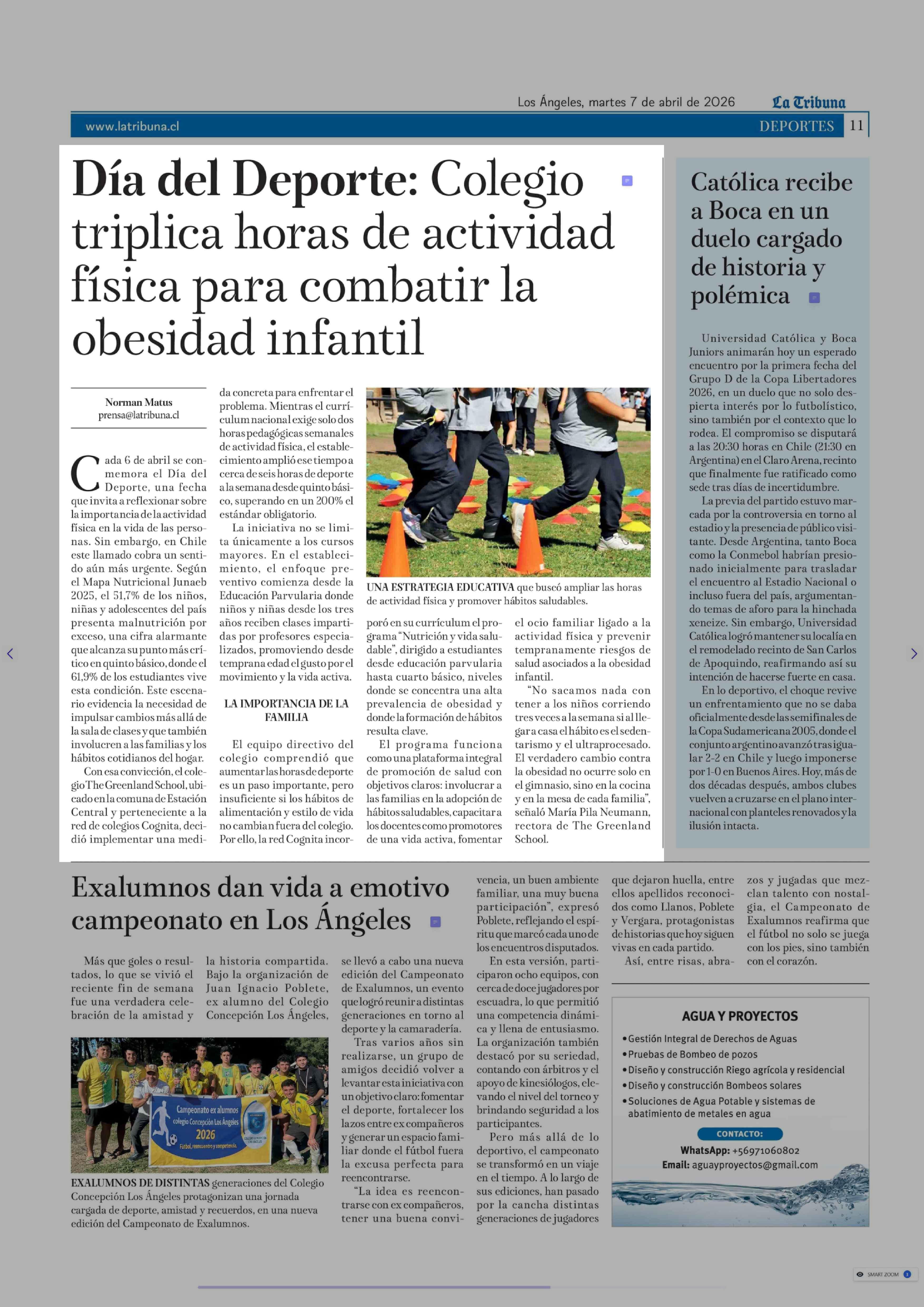 Día del Deporte: Colegio triplica horas de actividad física para combatir la obesidad infantil 07-04-2026 La Tribuna |