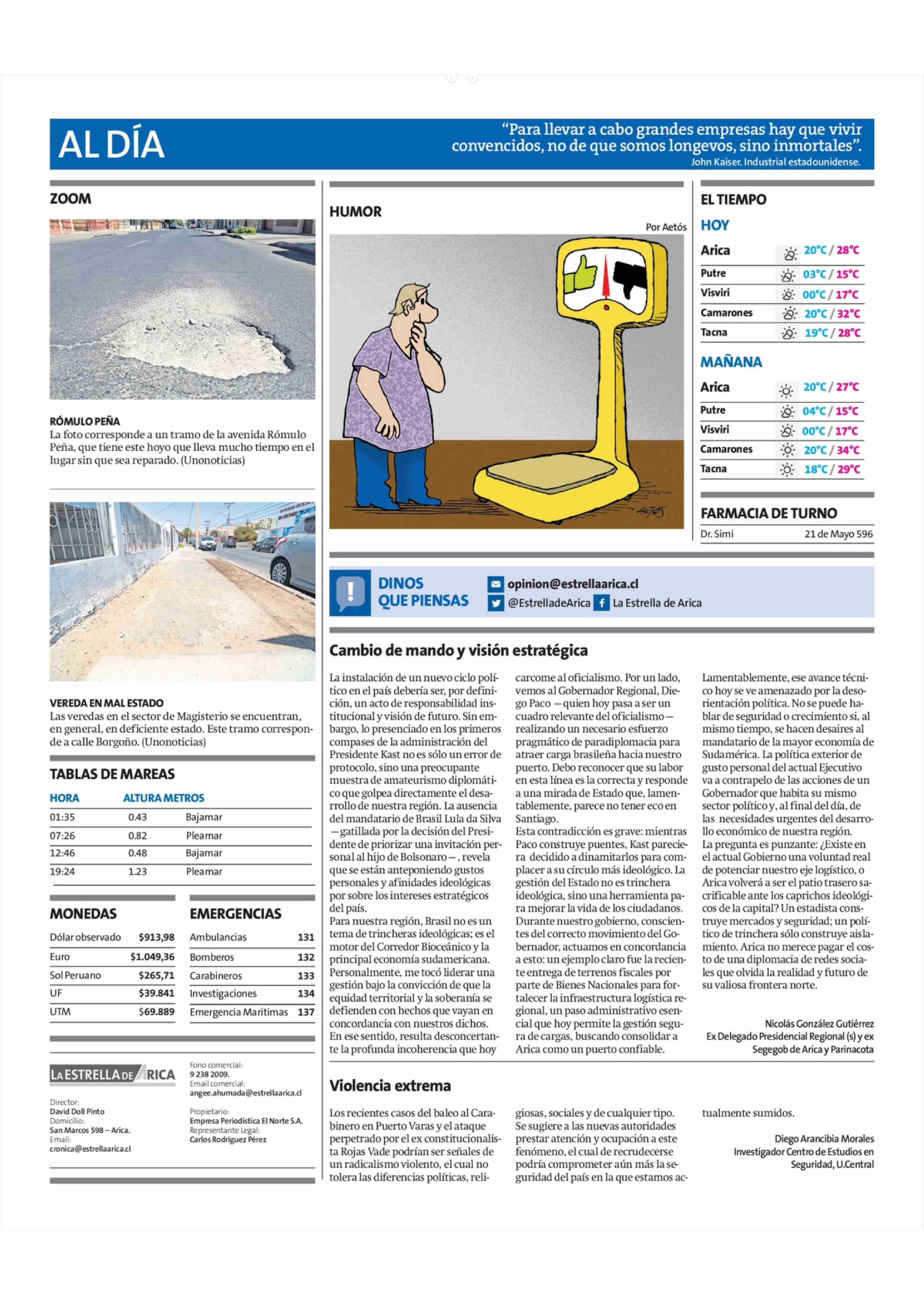 Columnas de Opinión: Cambio de mando y visión estratégica 15-03-2026 La Estrella de Arica |