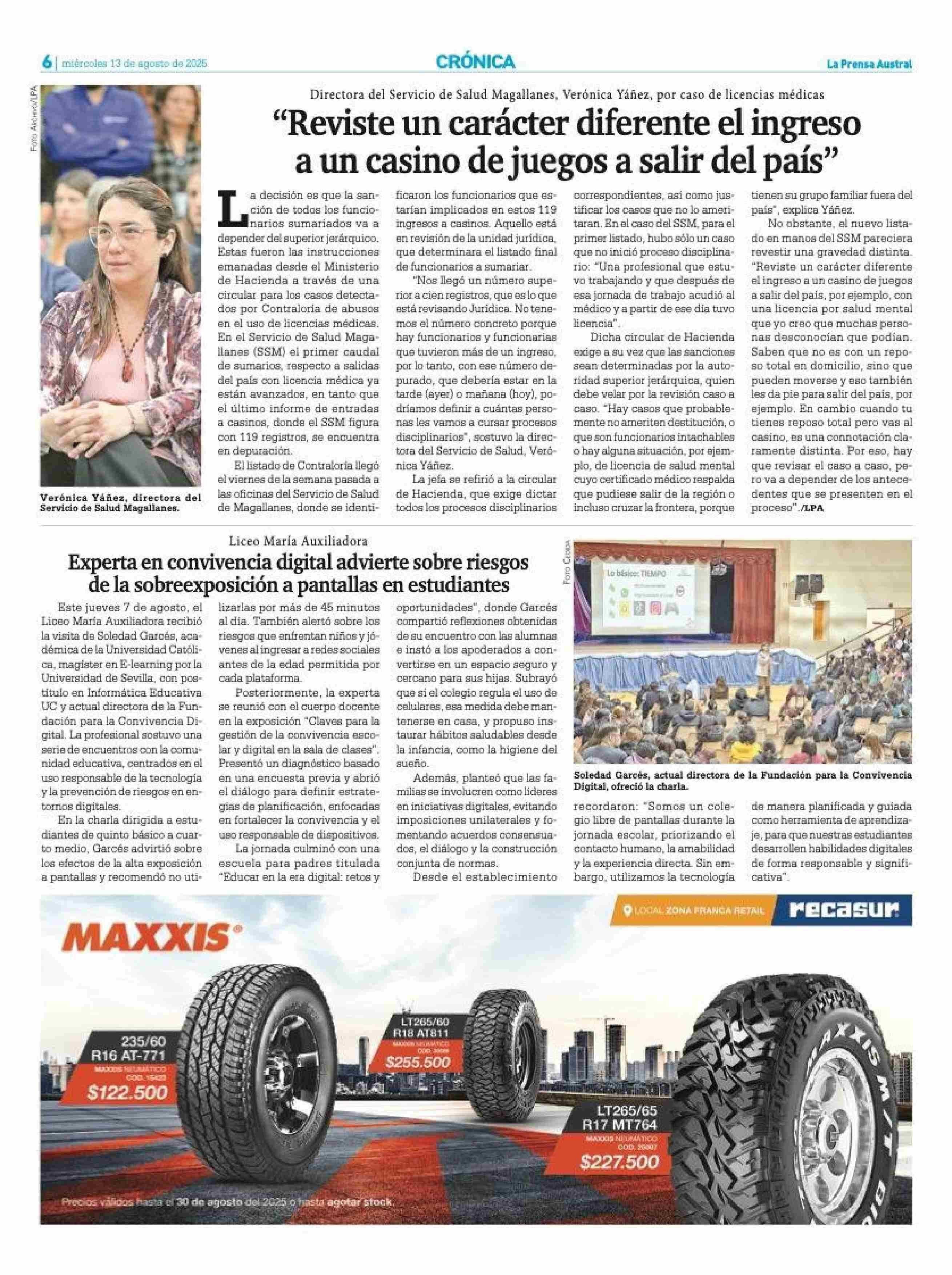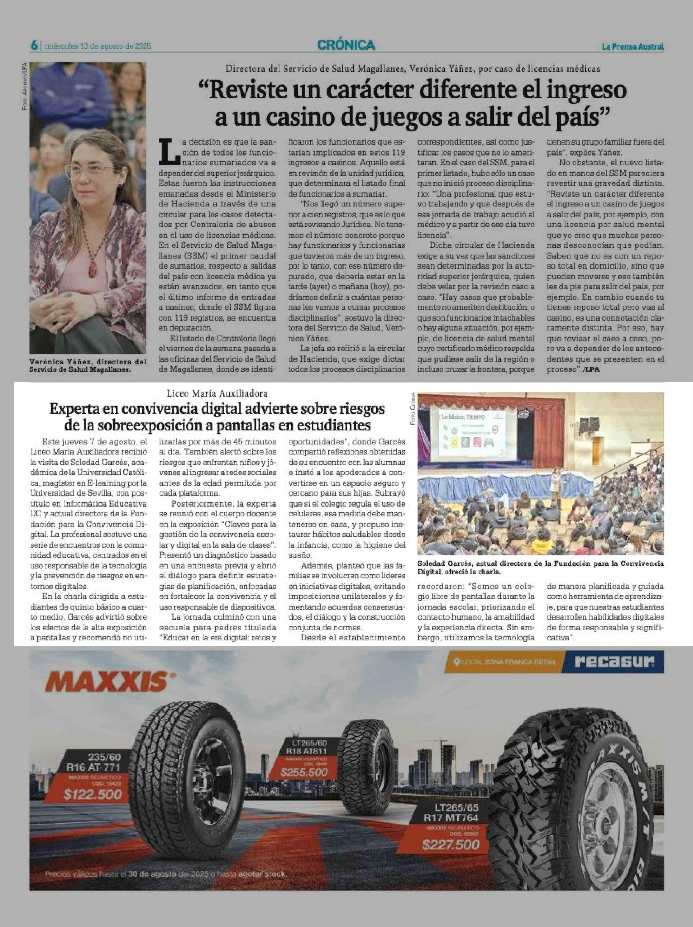 Experta en convivencia digital advierte sobre riesgos de la sobreexposición a pantallas en estudiantes 13-08-2025 La Prensa Austral |