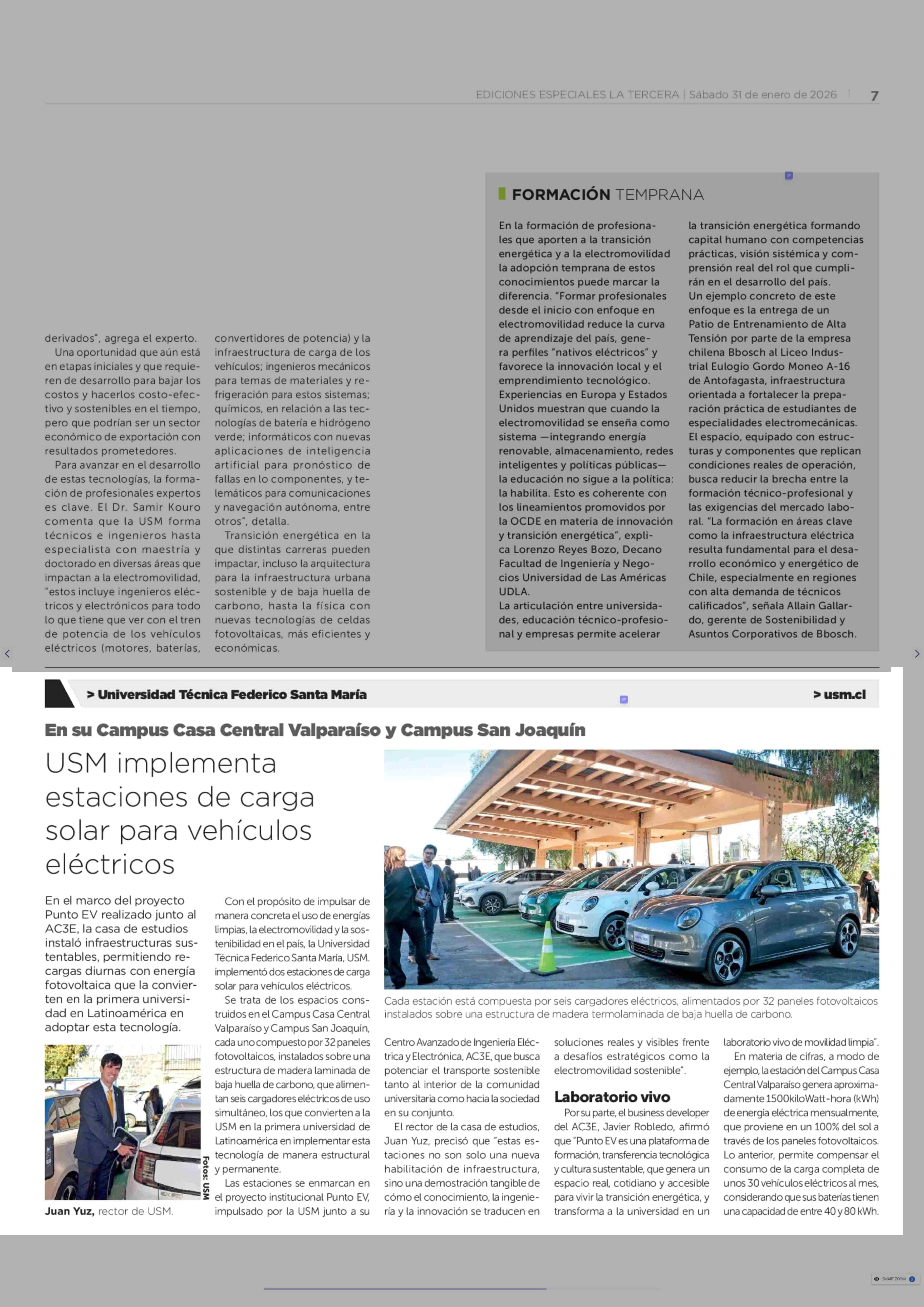 USM implementa estaciones de carga solar para vehículos eléctricos 31-01-2026 La Tercera |