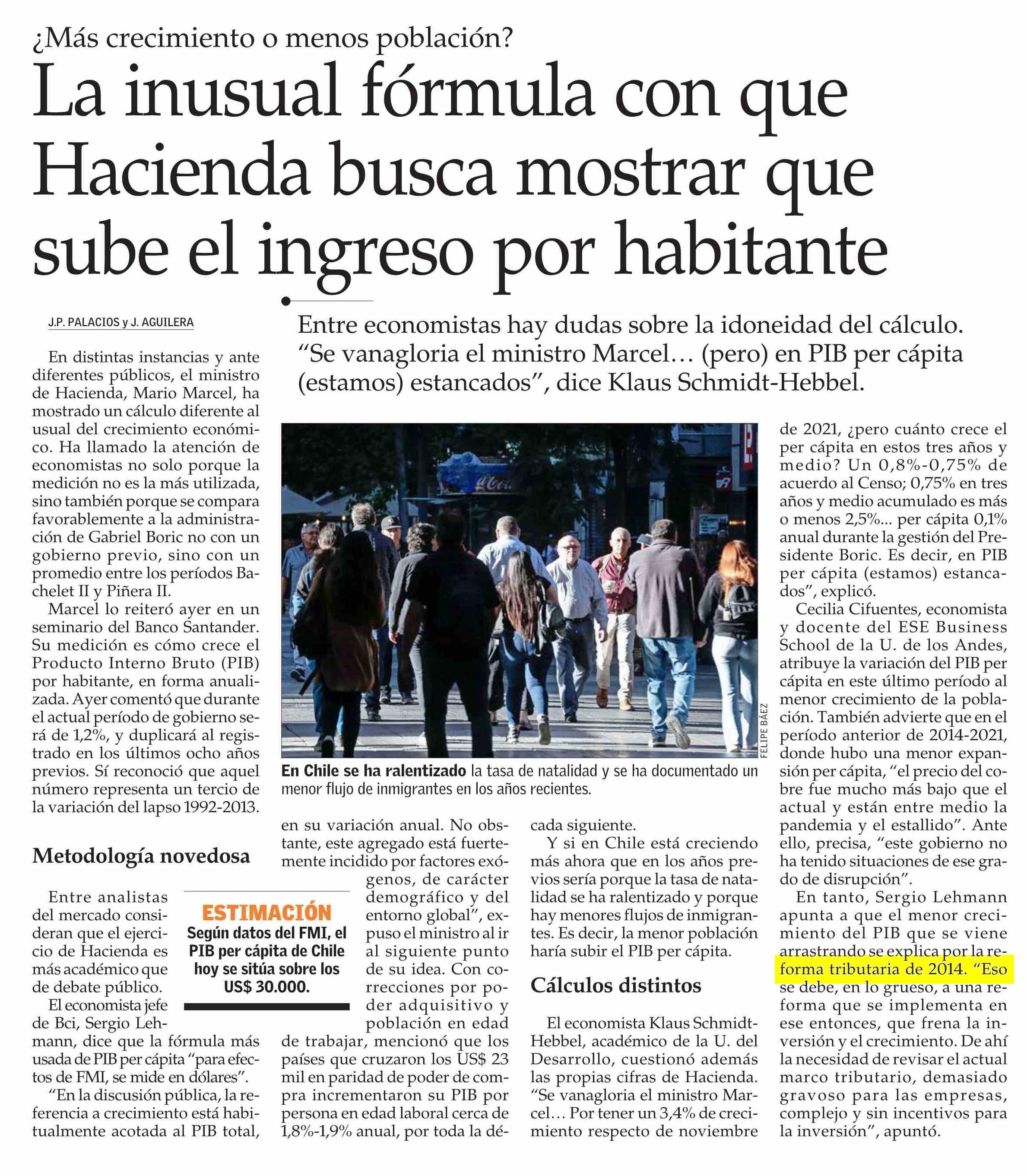 La inusual fórmula con que Hacienda busca mostrar que sube el ingreso por habitante 13-06-2025 El Mercurio |