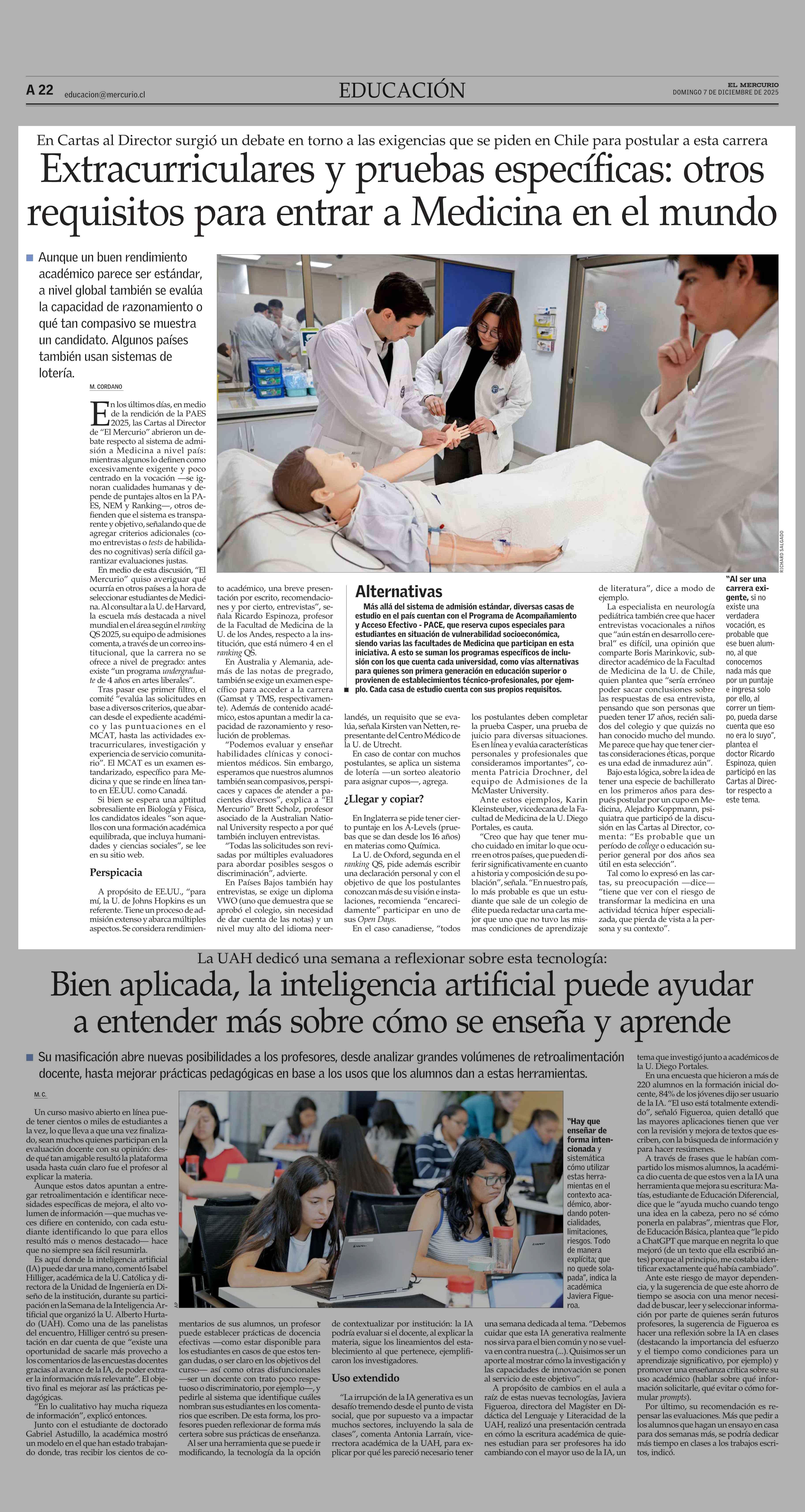 Extracurriculares y pruebas específicas: otros requisitos para entrar a Medicina en el mundo 07-12-2025 El Mercurio |