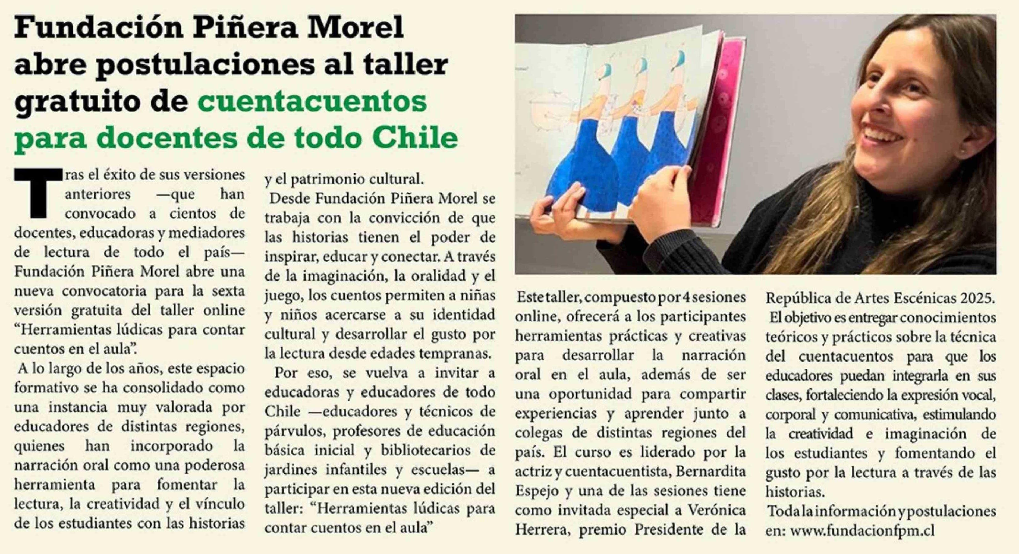 Título: Fundación Piñera Morel abre postulaciones al taller gratuito de cuentacuentos para docentes de todo Chile