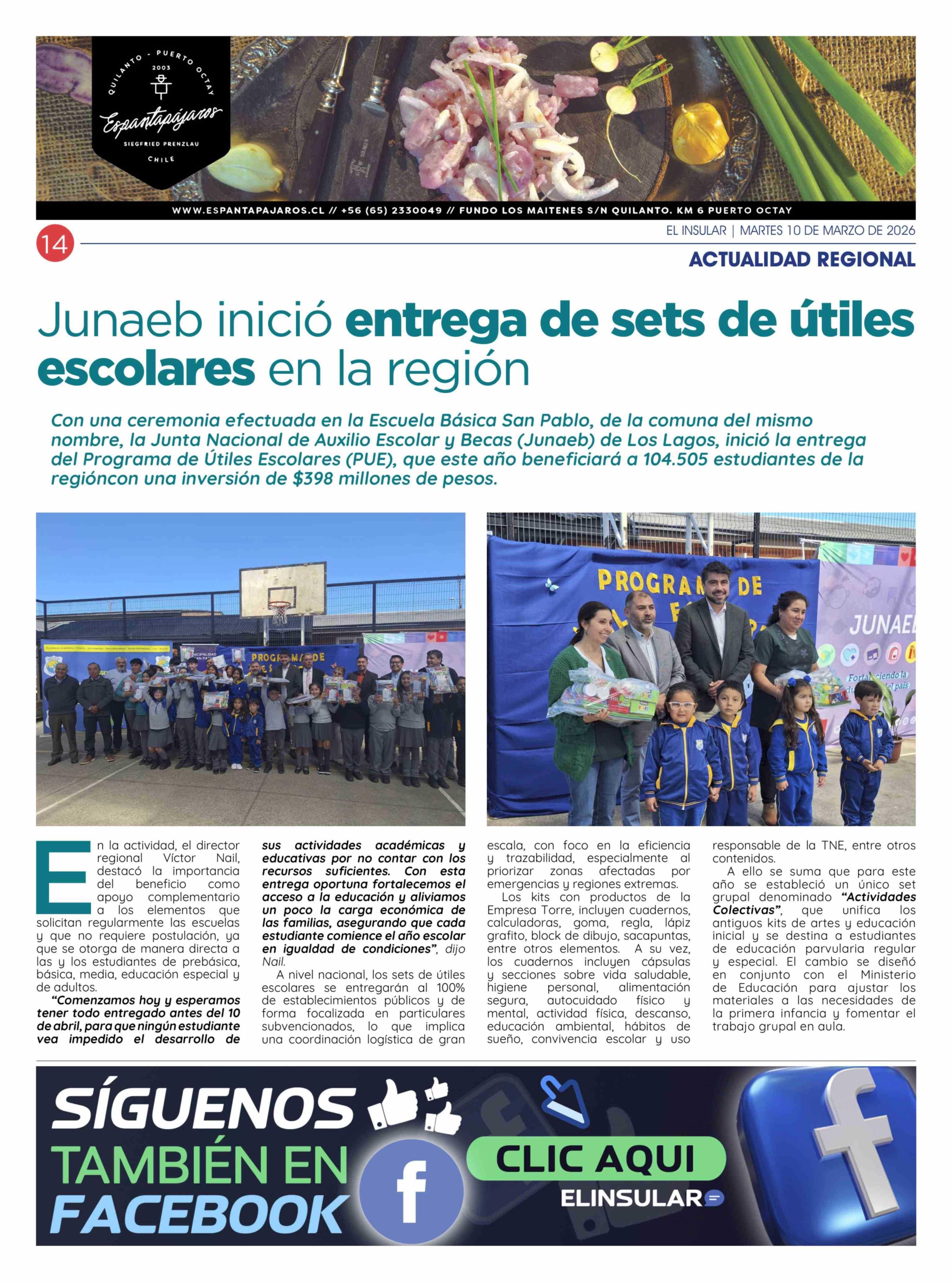 Junaeb inició entrega de sets de útiles escolares en la región 10-03-2026 El Insular |