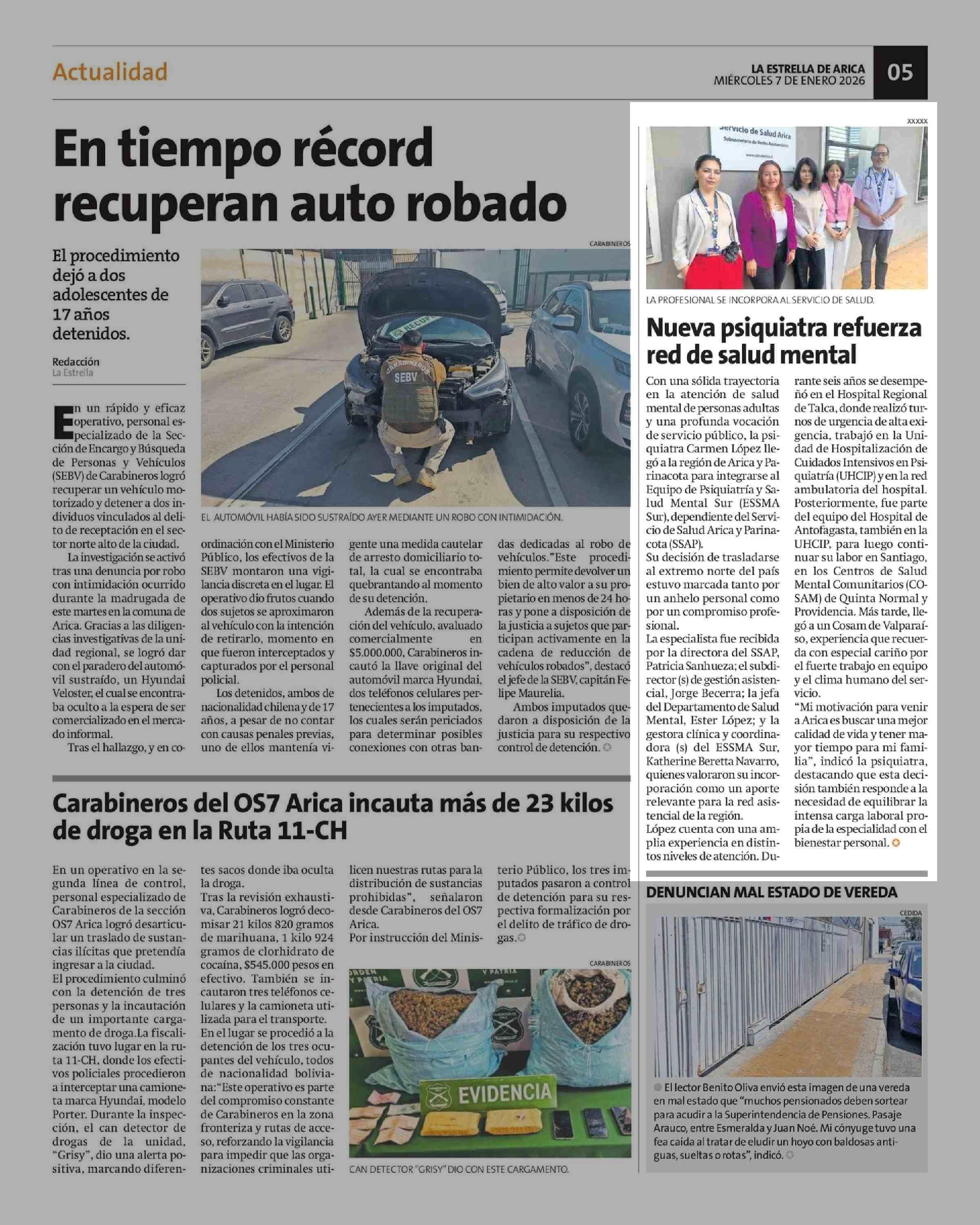 | Fecha: | 07-01-2026 | Sector: | Noticia general | Región: | Región de Arica y Parinacota |