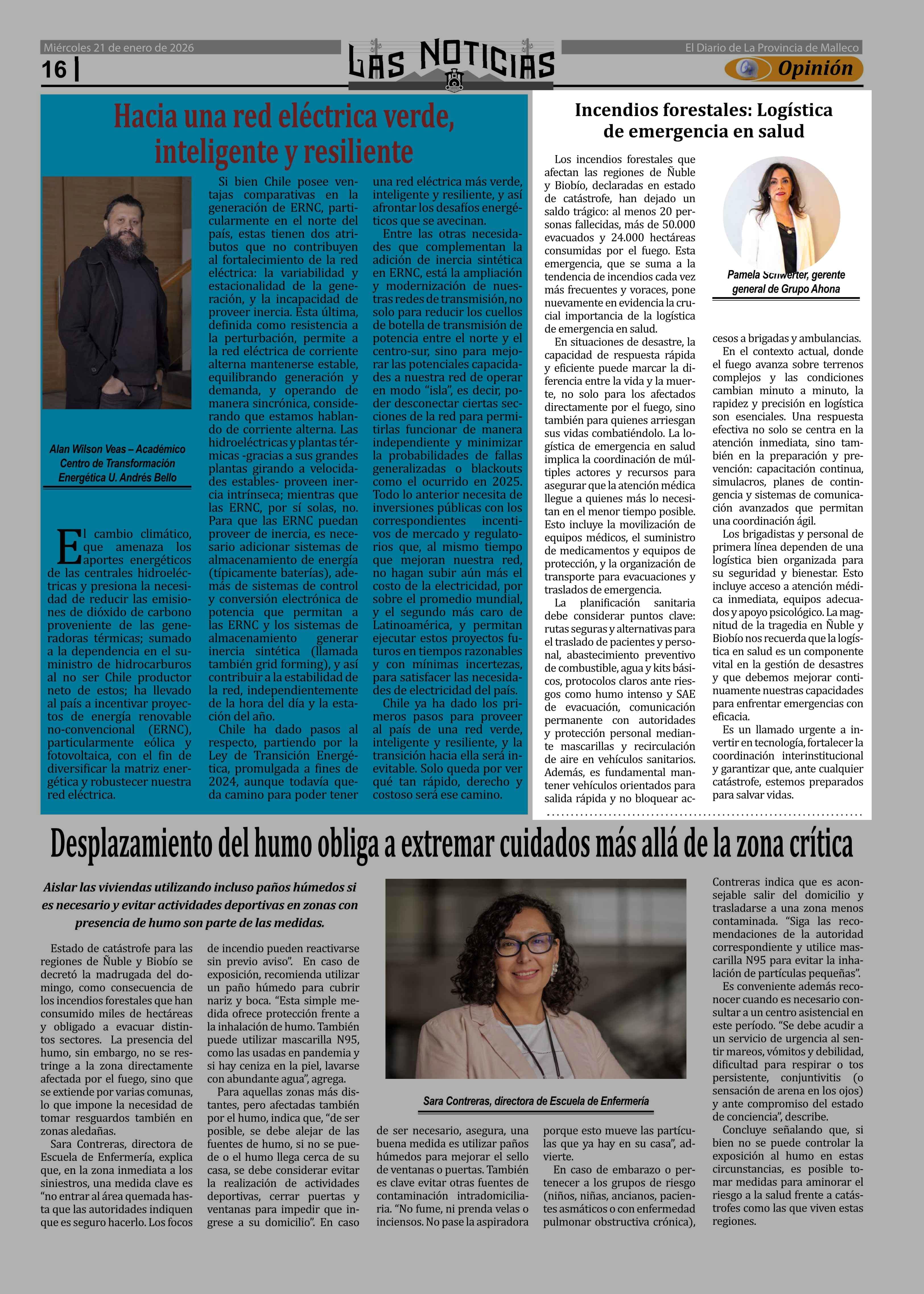 Columnas de Opinión: Incendios forestales: Logística de emergencia en salud 21-01-2026 Las Noticias |