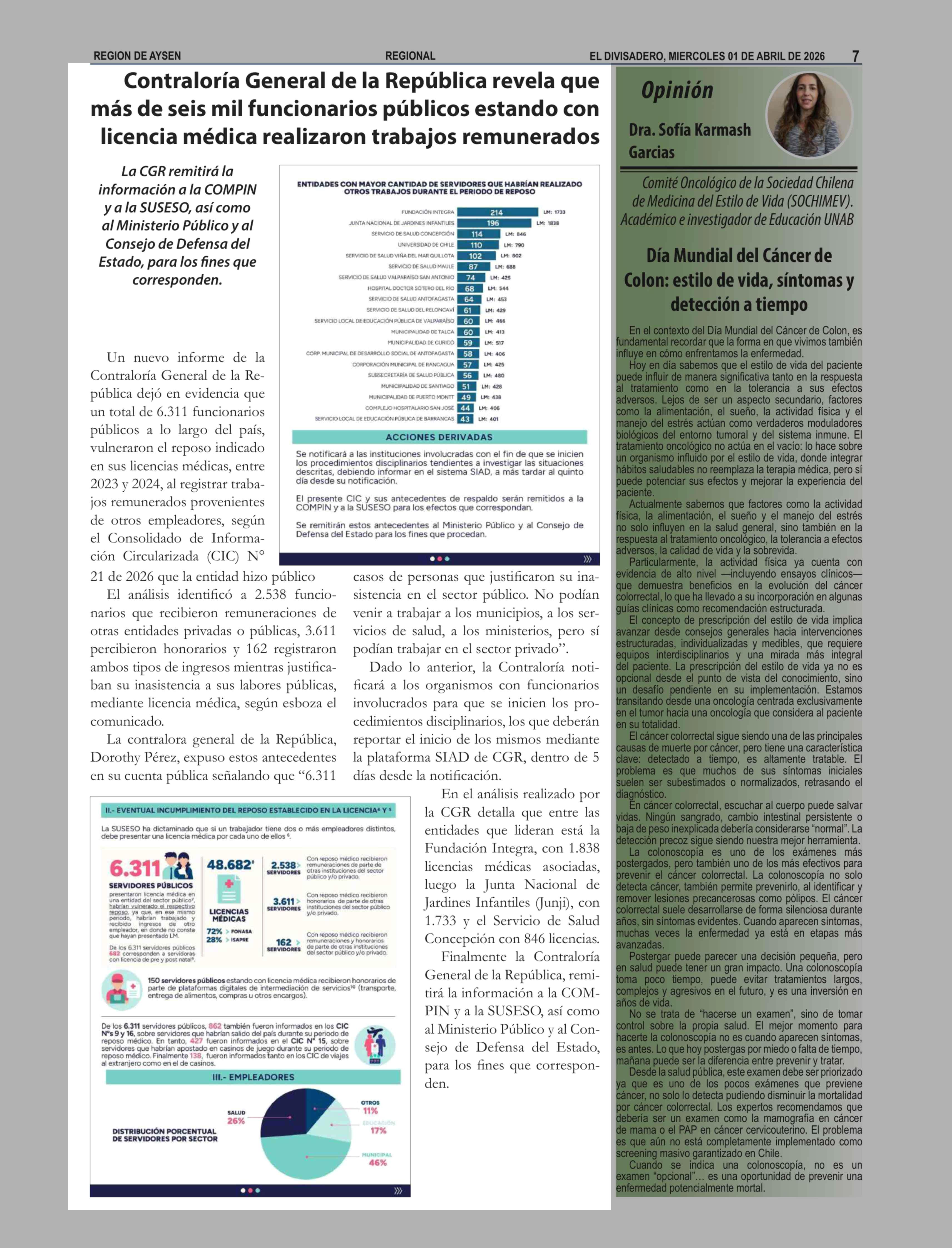 Contraloría General de la República revela que más de seis mil funcionarios públicos estando con licencia médica realizaron trabajos remunerados 01-04-2026 El Divisadero |