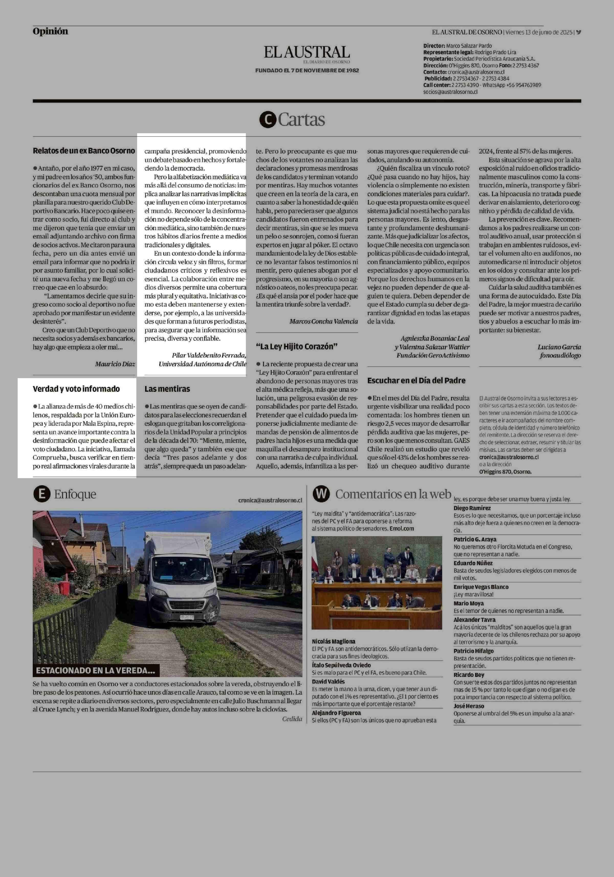 CARTAS: Verdad y voto informado 13-06-2025 El Austral de Osorno |