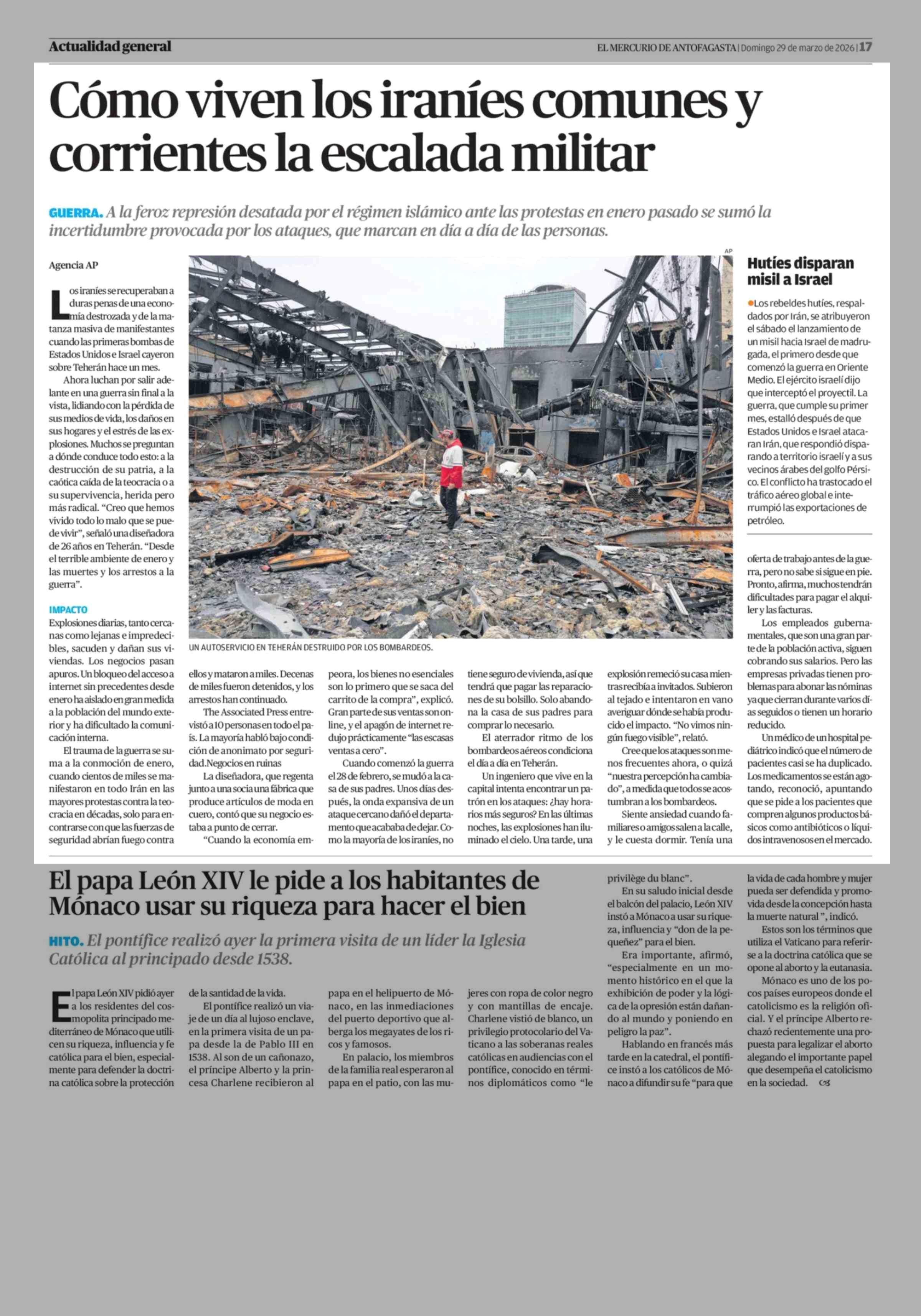 Cómo viven los iraníes comunes y corrientes la escalada militar 29-03-2026 El Mercurio de Antofagasta |