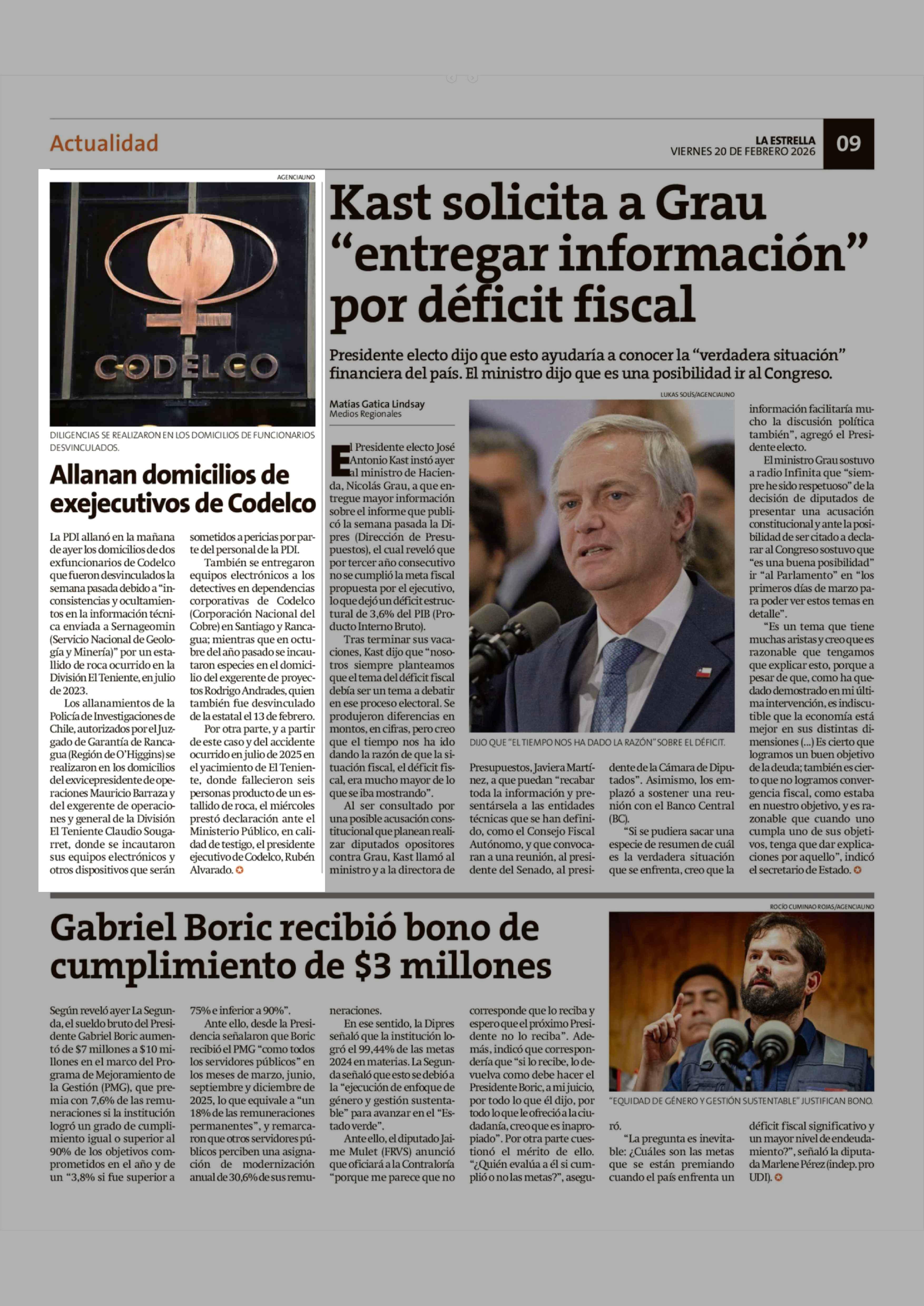 Allanan domicilios de exejecutivos de Codelco 20-02-2026 La Estrella de Chiloé |