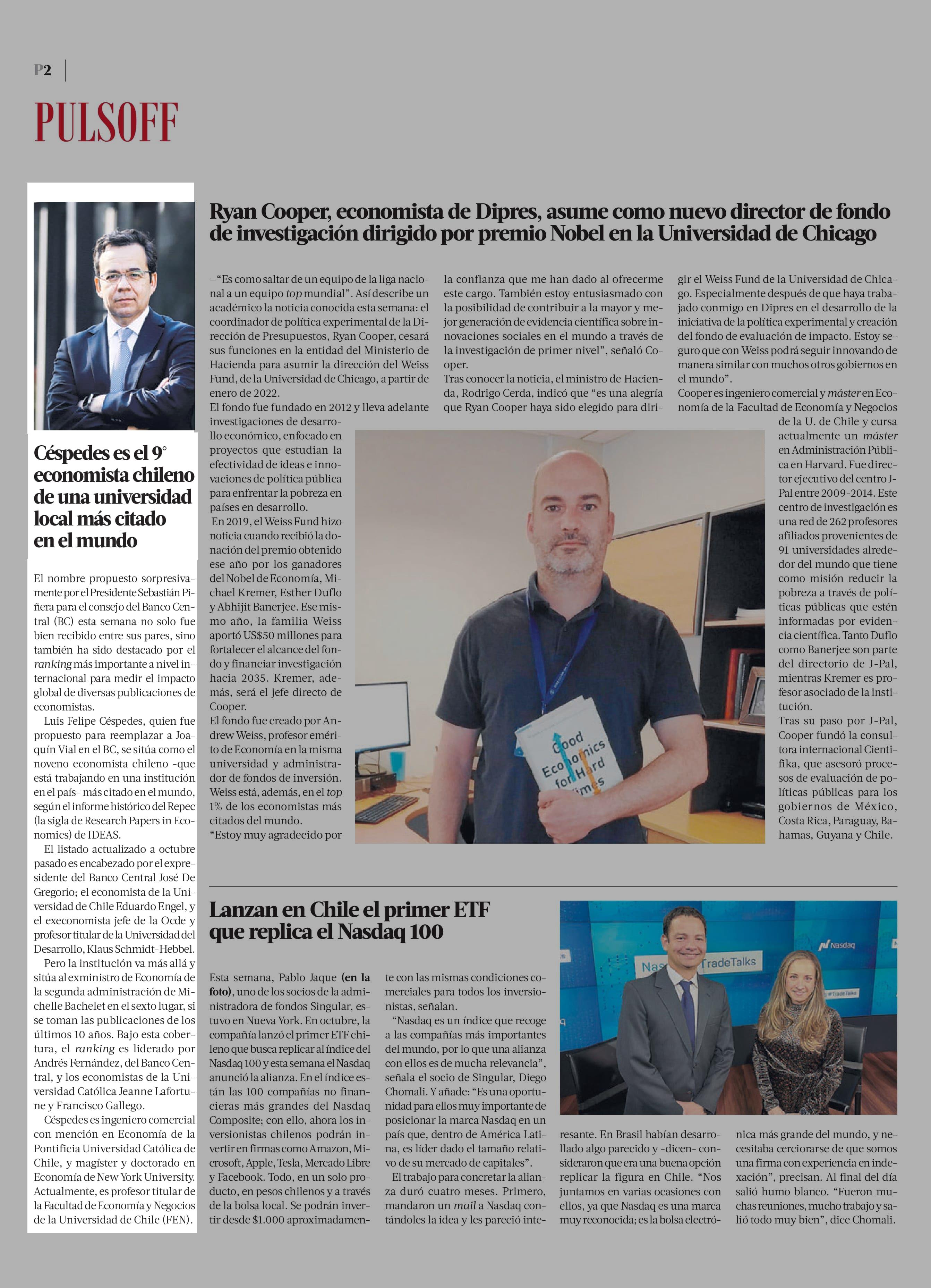Céspedes es el 9” economista chileno de una universidad local más citado en el mundo 21-11-2021 La Tercera |
