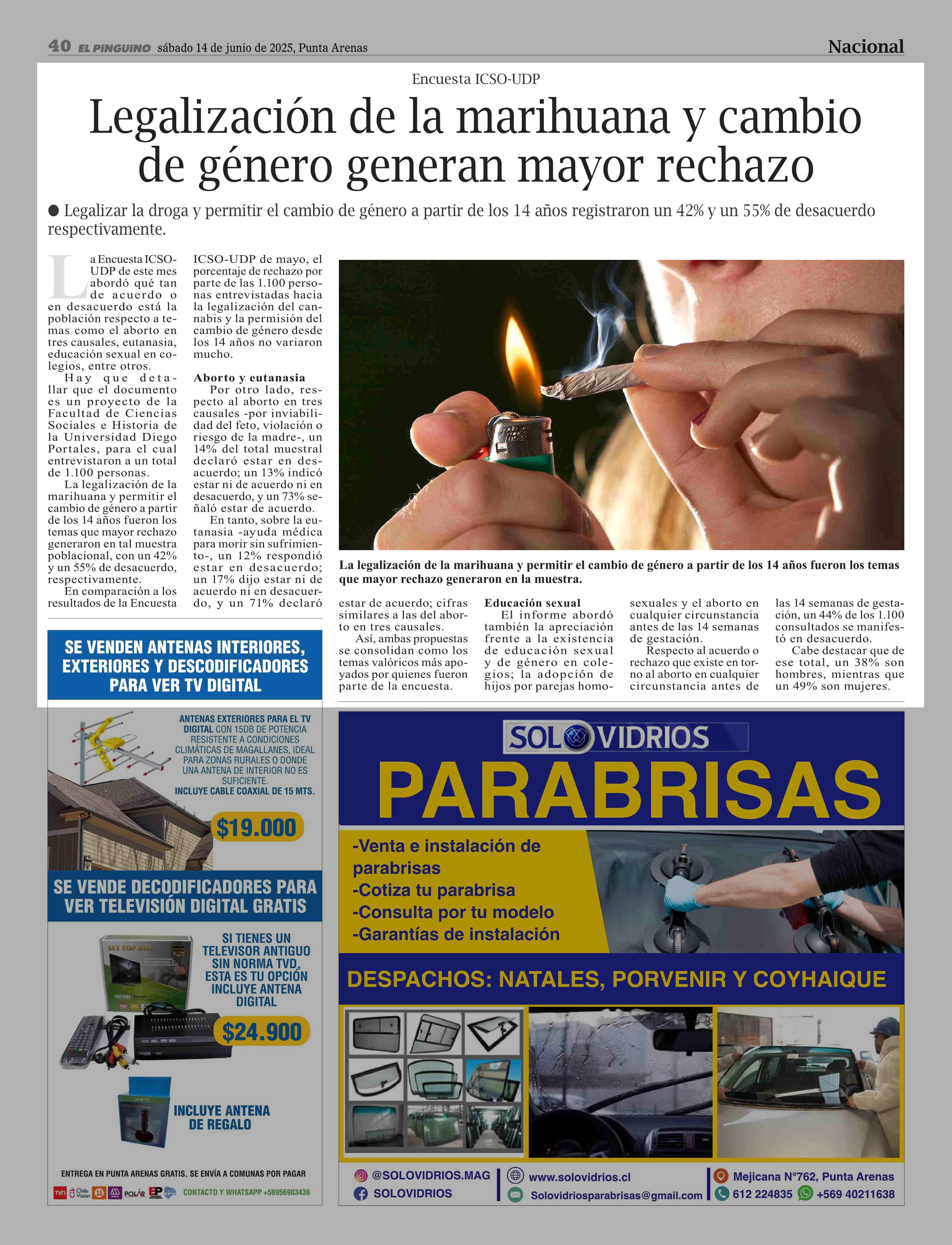 Legalización de la marihuana y cambio de género generan mayor rechazo 14-06-2025 El Pingüino |