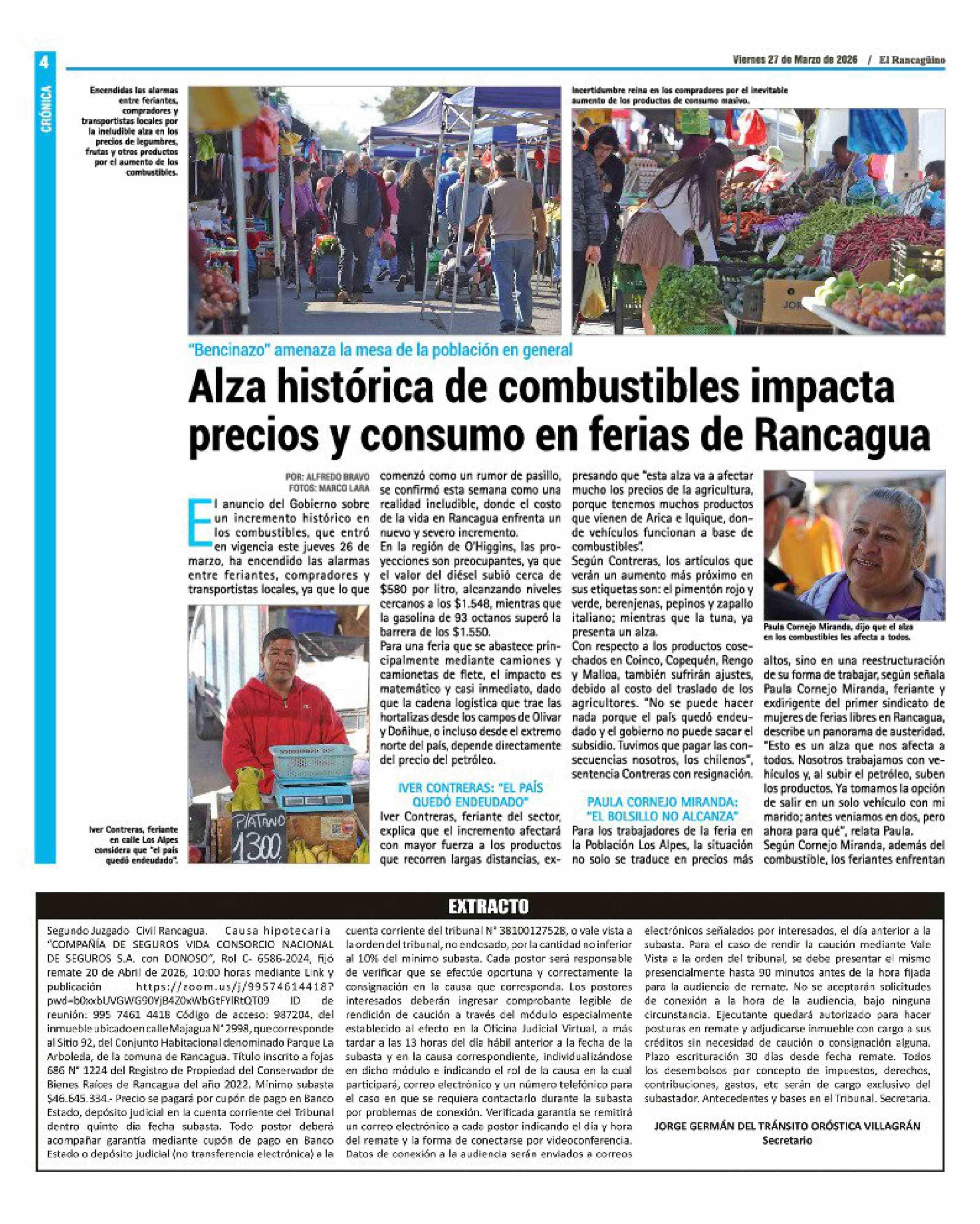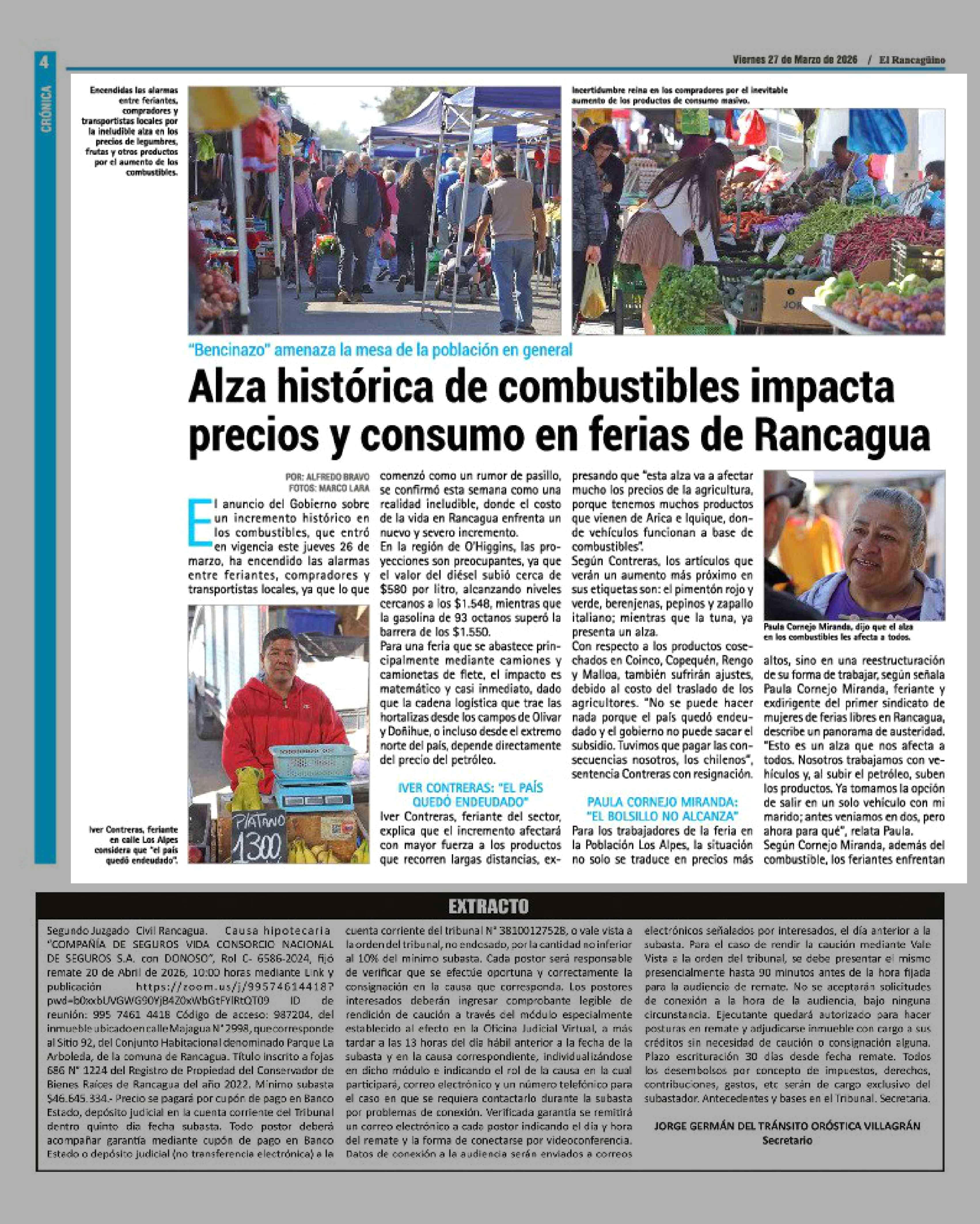 Alza histórica de combustibles impacta precios y consumo en ferias de Rancagua 27-03-2026 El Rancagüino |