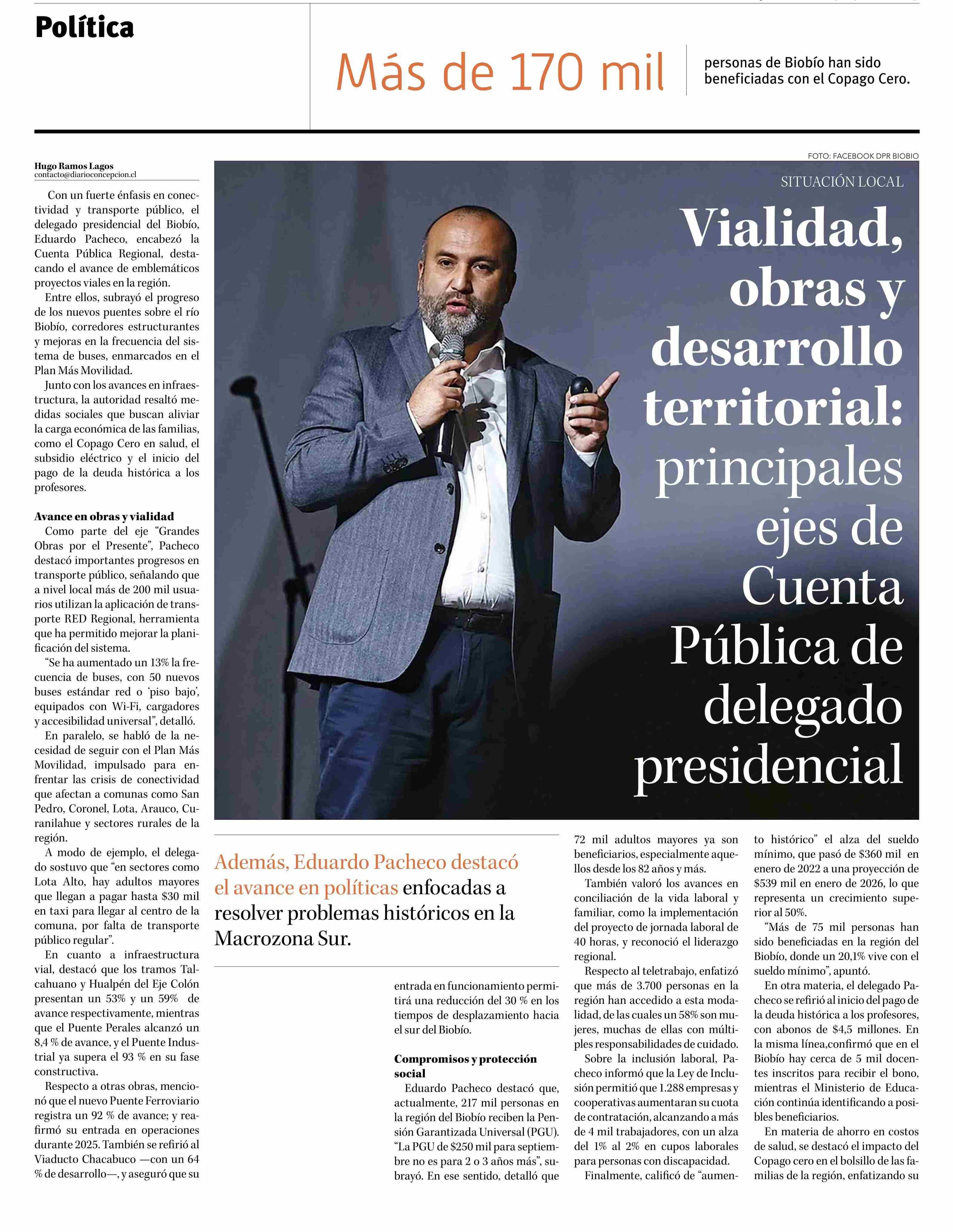 Vialidad, obras y desarrollo territorial: principales ejes de Cuenta Pública de delegado presidencial 14-06-2025 Diario Concepción |