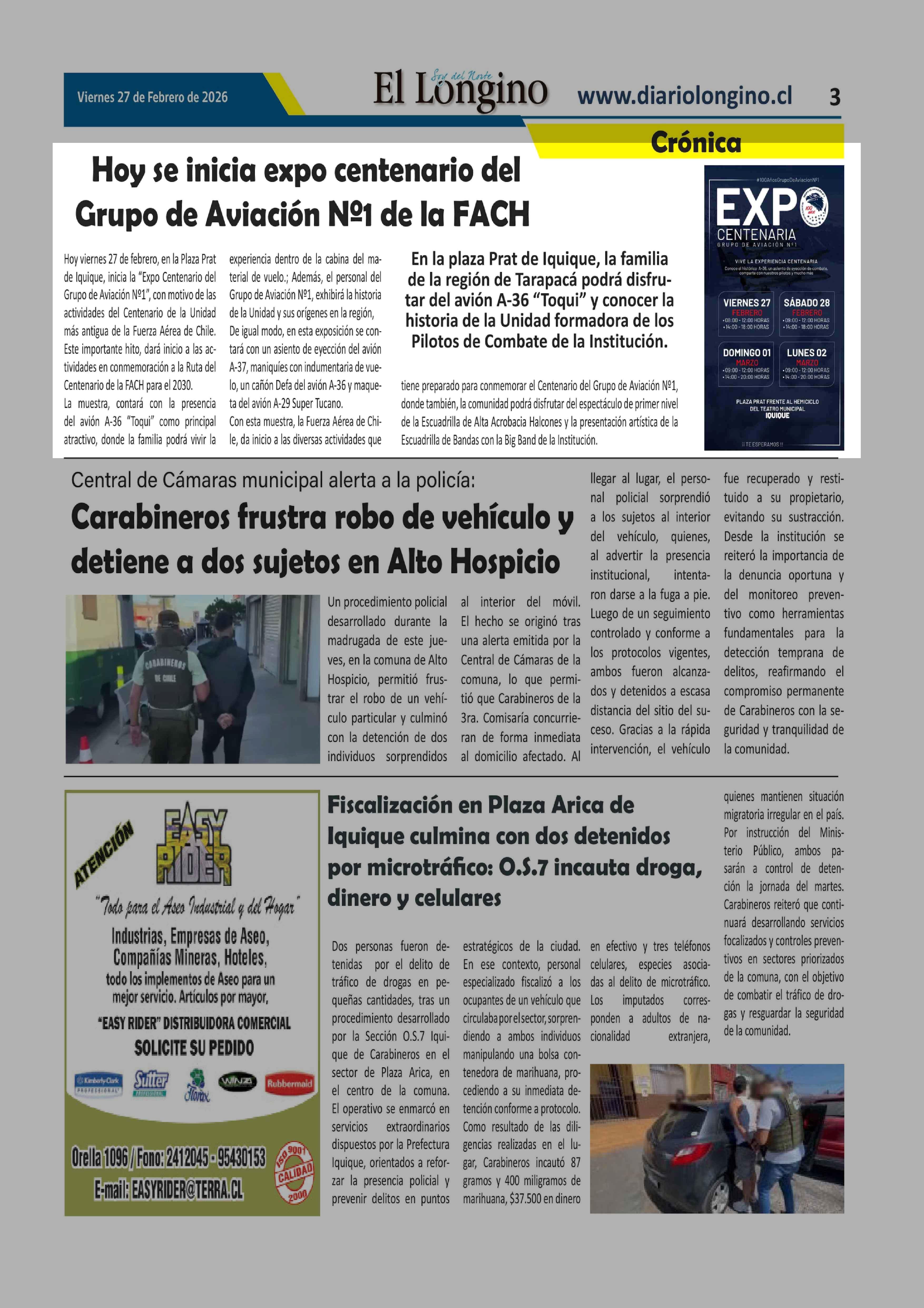 Fecha: 27-02-2026 Sector: Noticia general Región: Región de Tarapacá