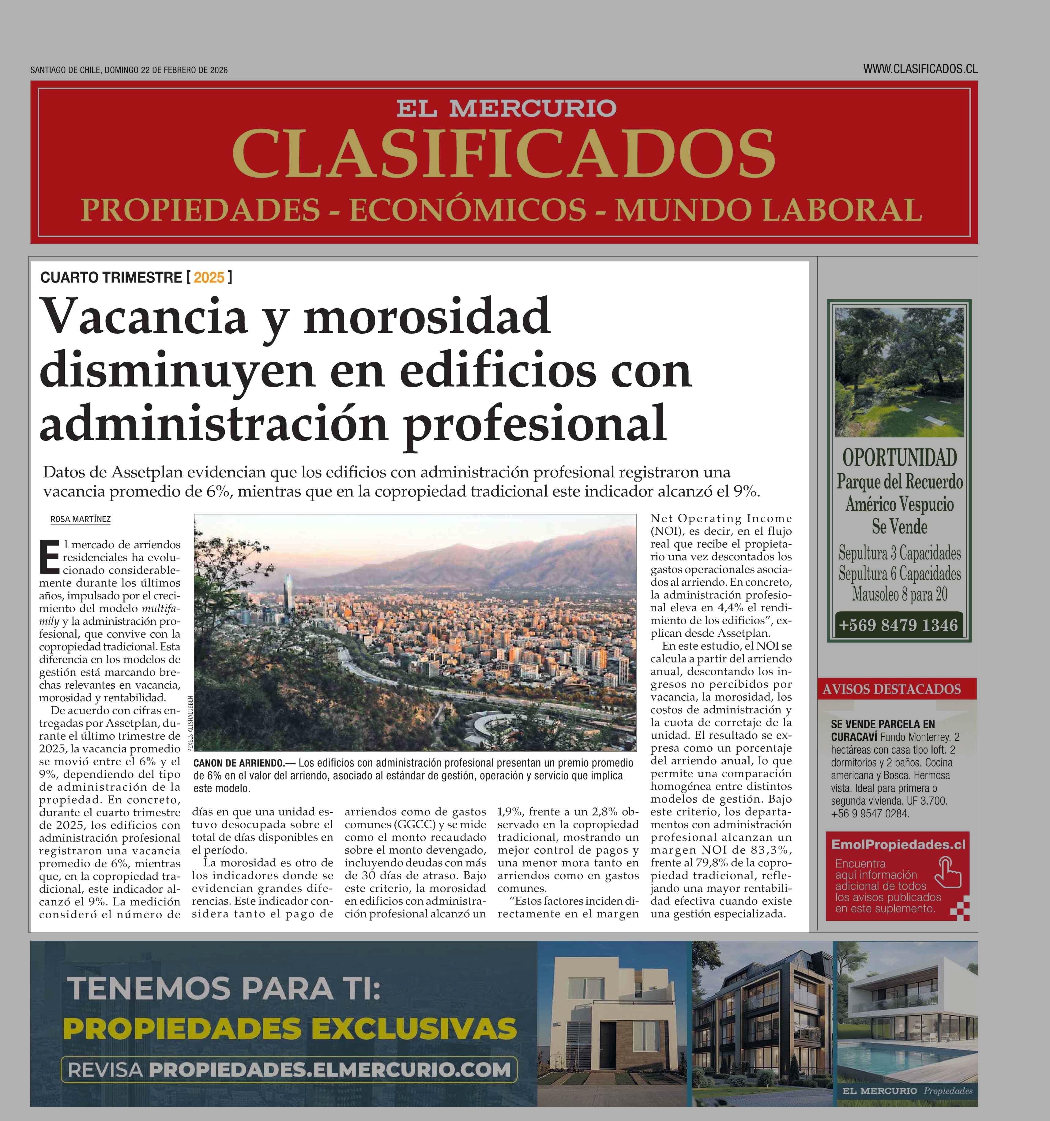 Título: Vacancia y morosidad disminuyen en edificios con administración profesional