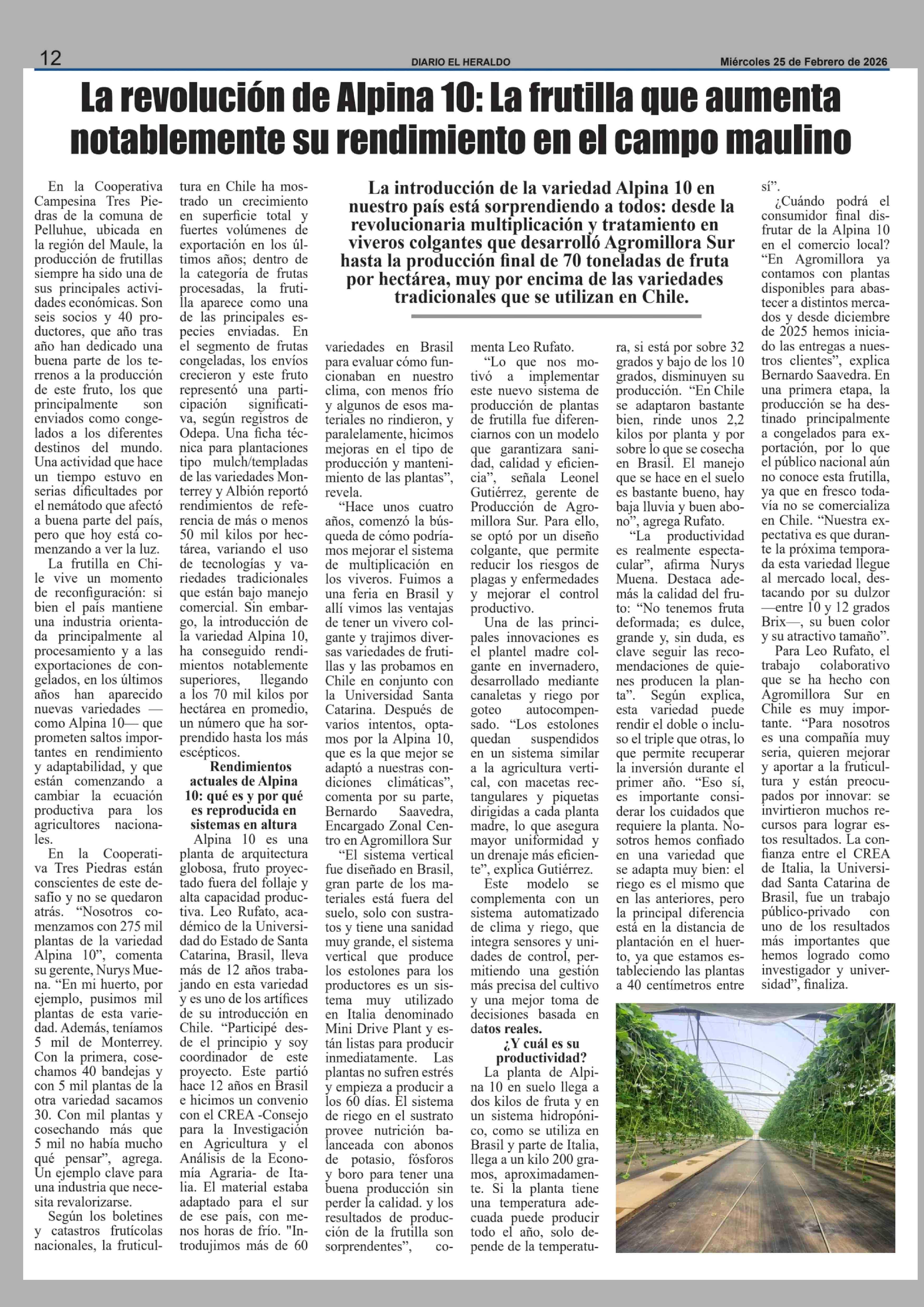 Título: La revolución de Alpina 10: La frutilla que aumenta notablemente su rendimiento en el campo maulino