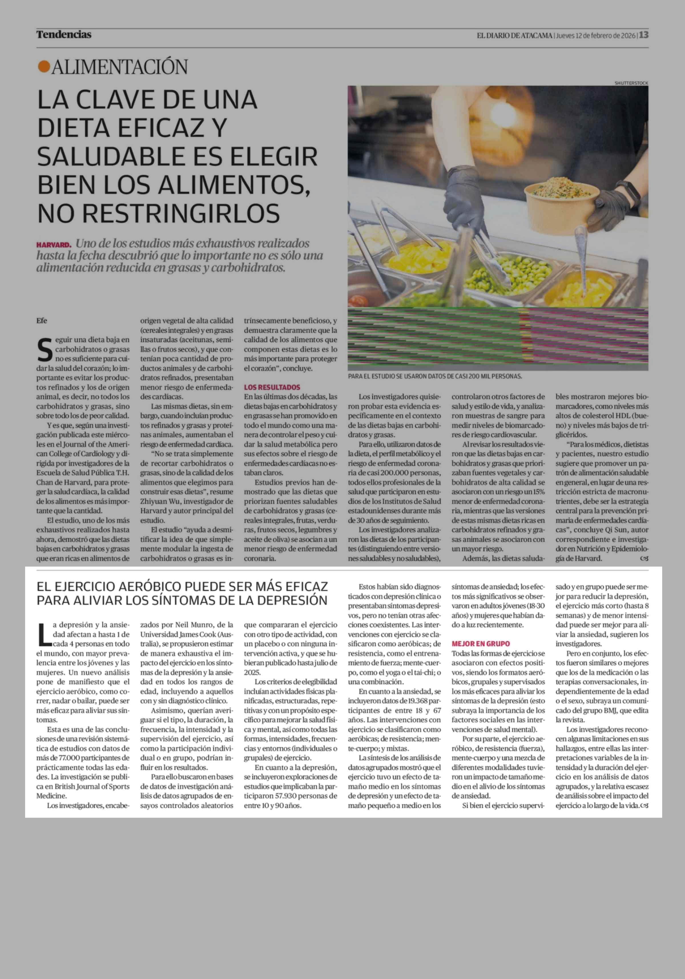 EL EJERCICIO AERÓBICO PUEDE SER MÁS EFICAZ PARA ALIVIAR LOS SÍNTOMAS DE LA DEPRESIÓN 12-02-2026 El Diario de Atacama |