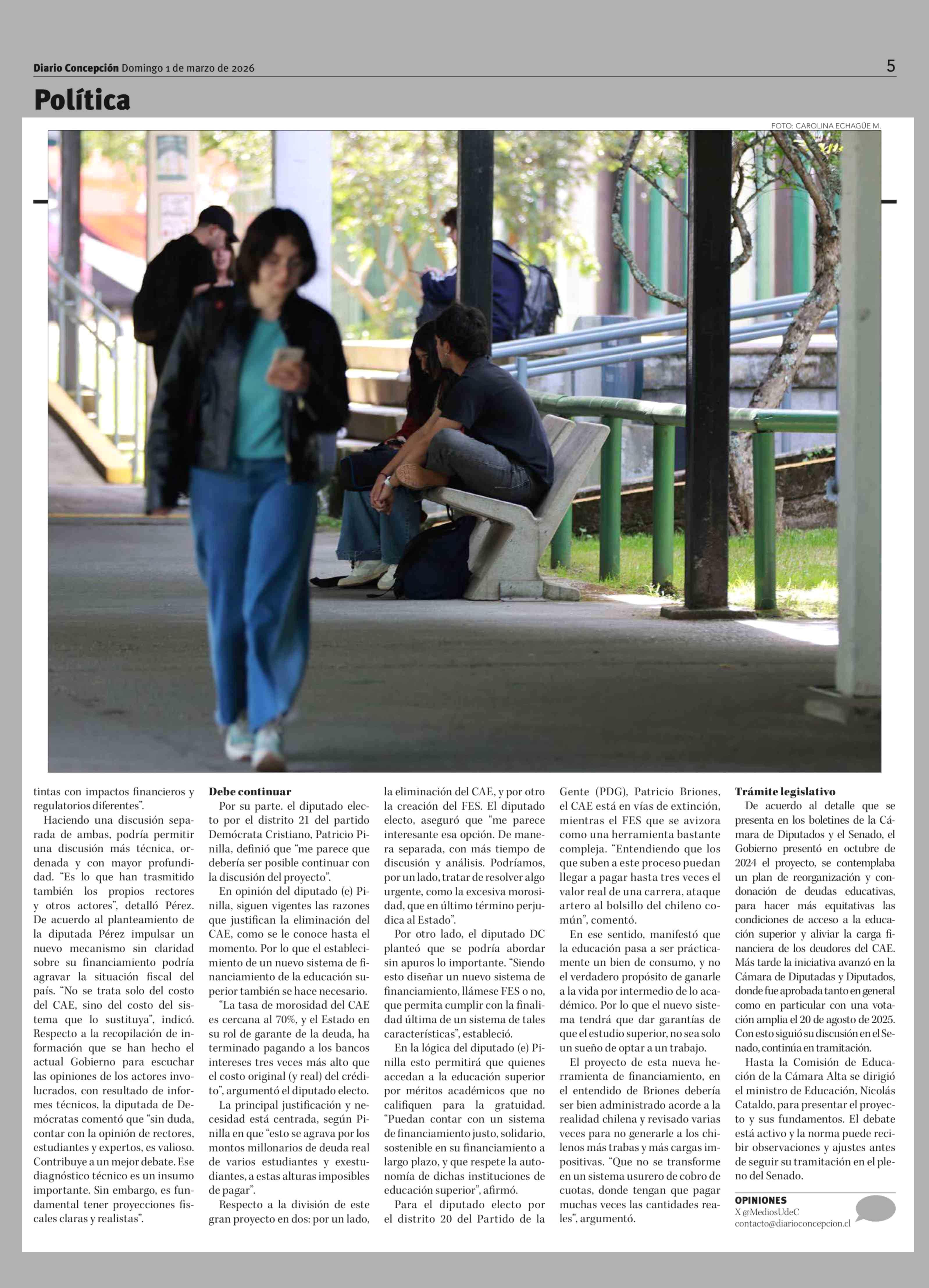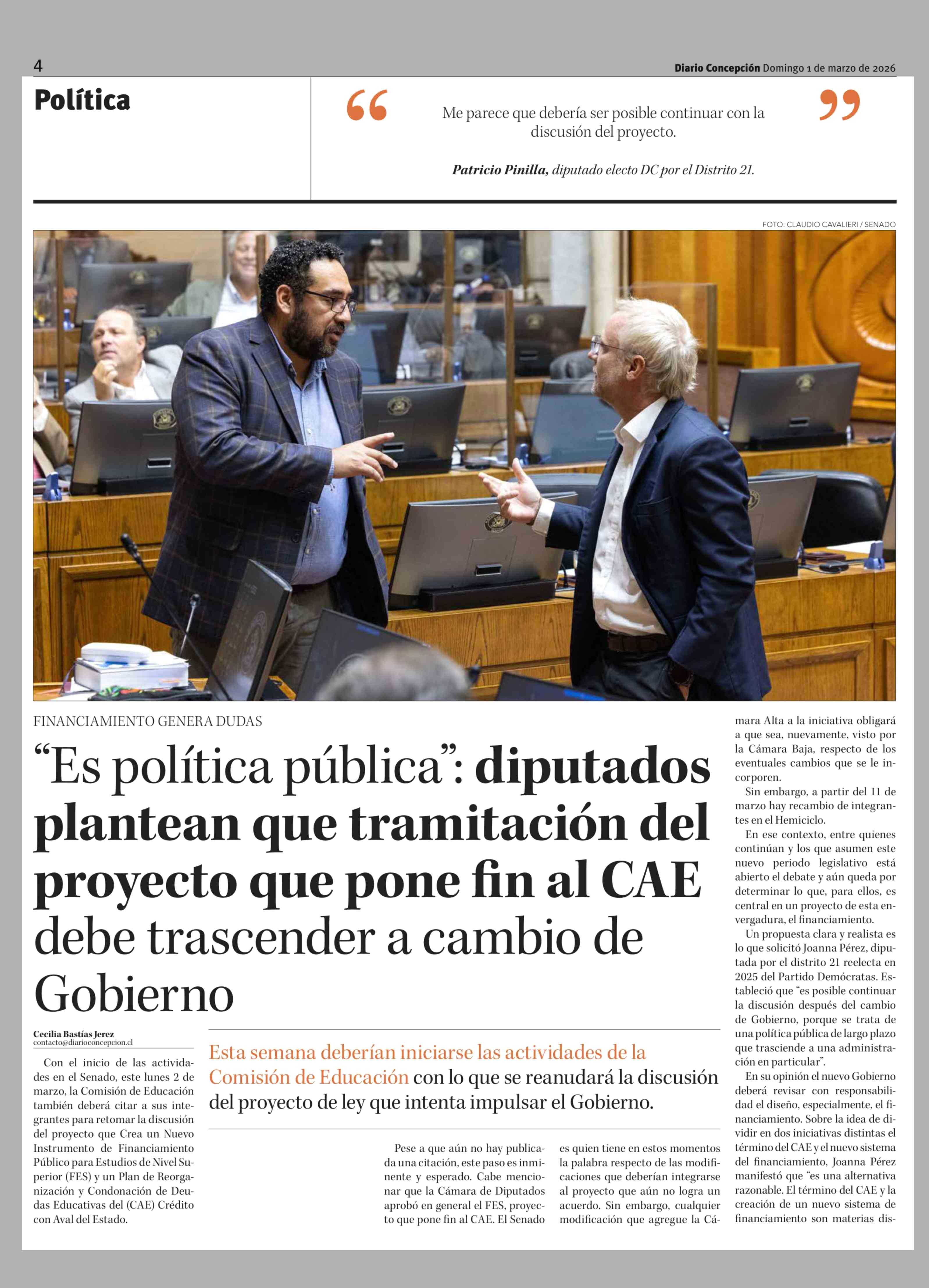 "Es política pública": diputados plantean que tramitación del proyecto que pone fin al CAE debe trascender a cambio de Gobierno 01-03-2026 Diario Concepción |