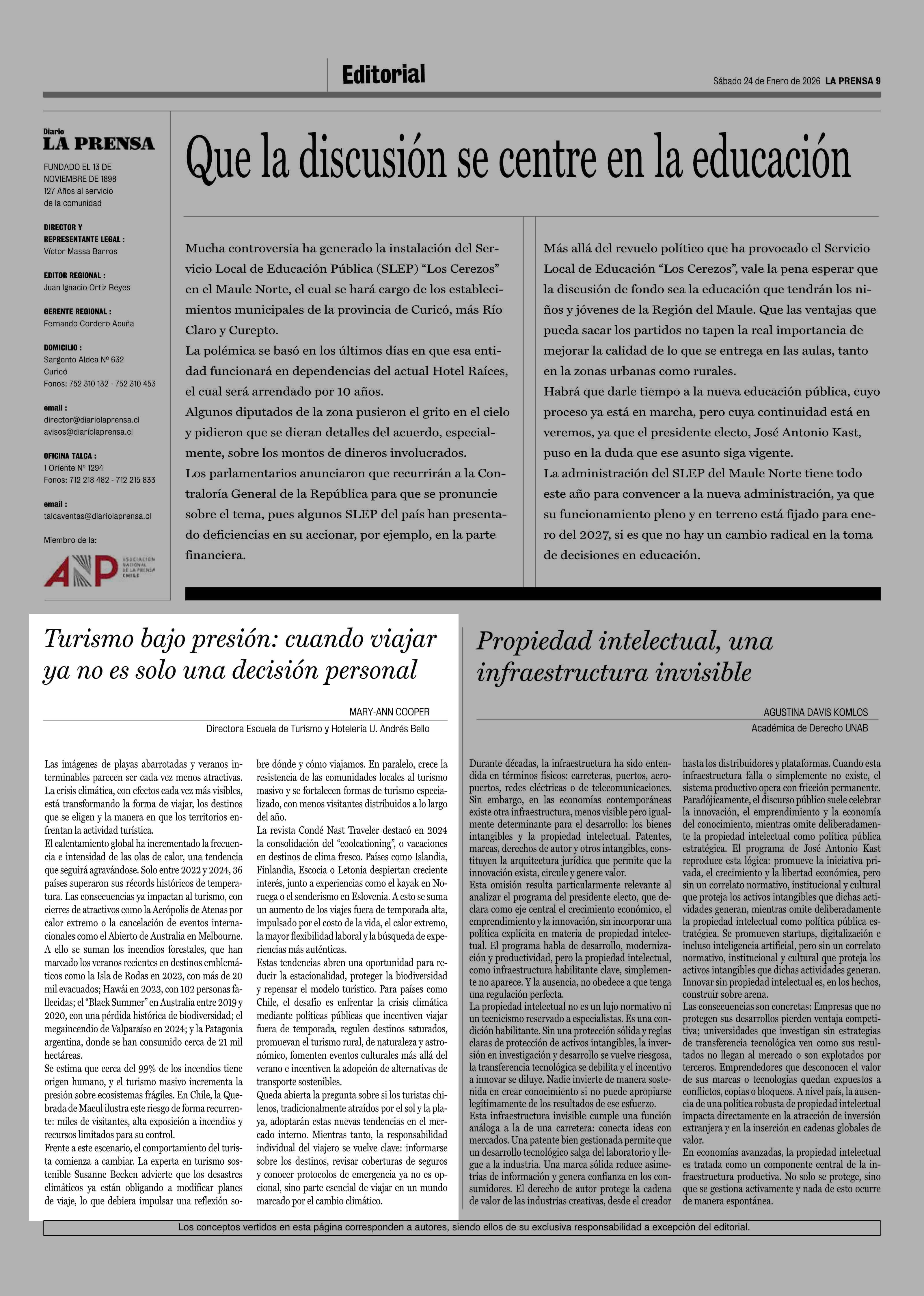 Cartas: Turismo bajo presión: cuando viajar ya no es solo una decisión personal 24-01-2026 La Prensa de Curicó |
