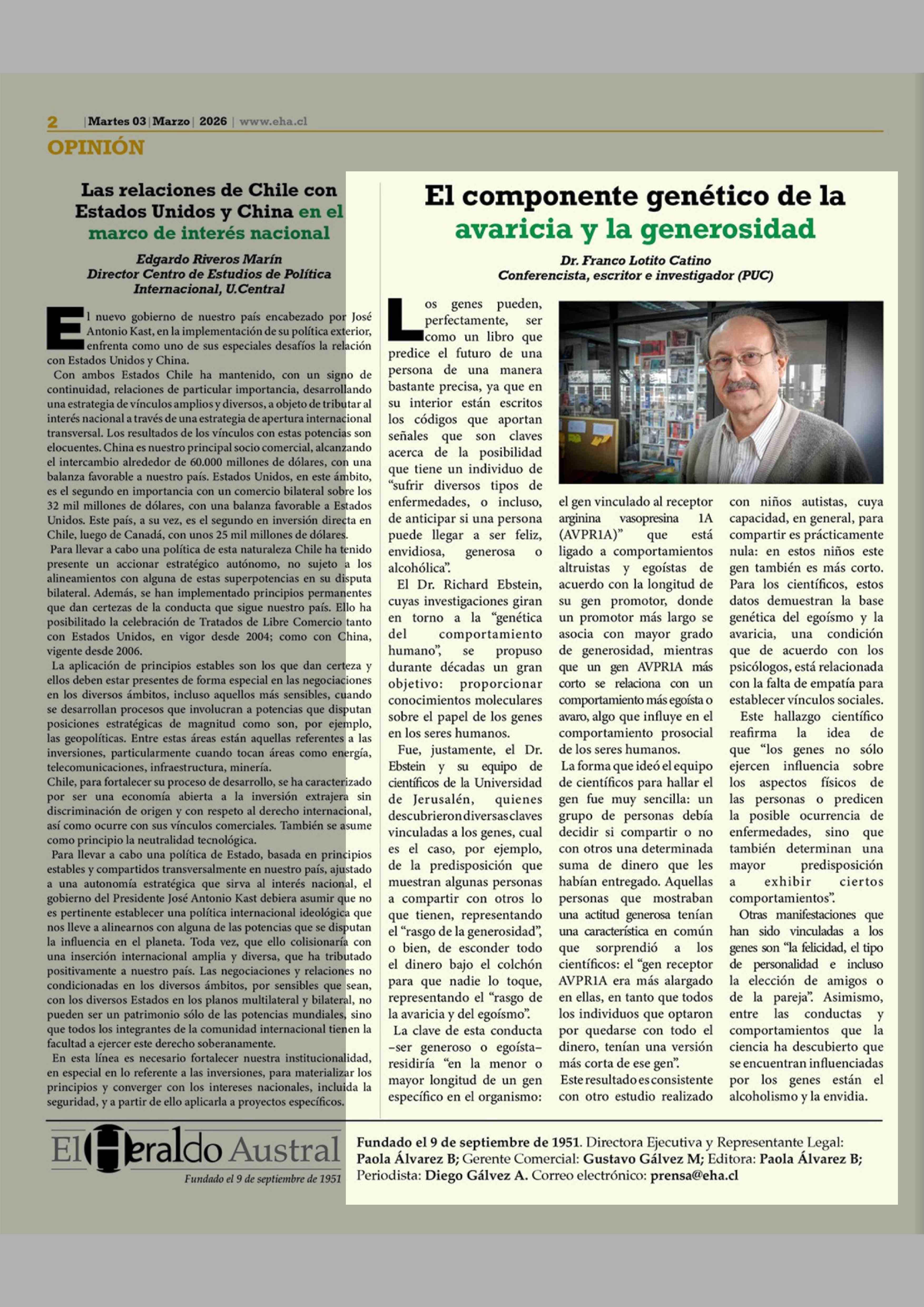Fecha: 03-03-2026 Sector: Columnas de Opinión Región: Región de Los Lagos