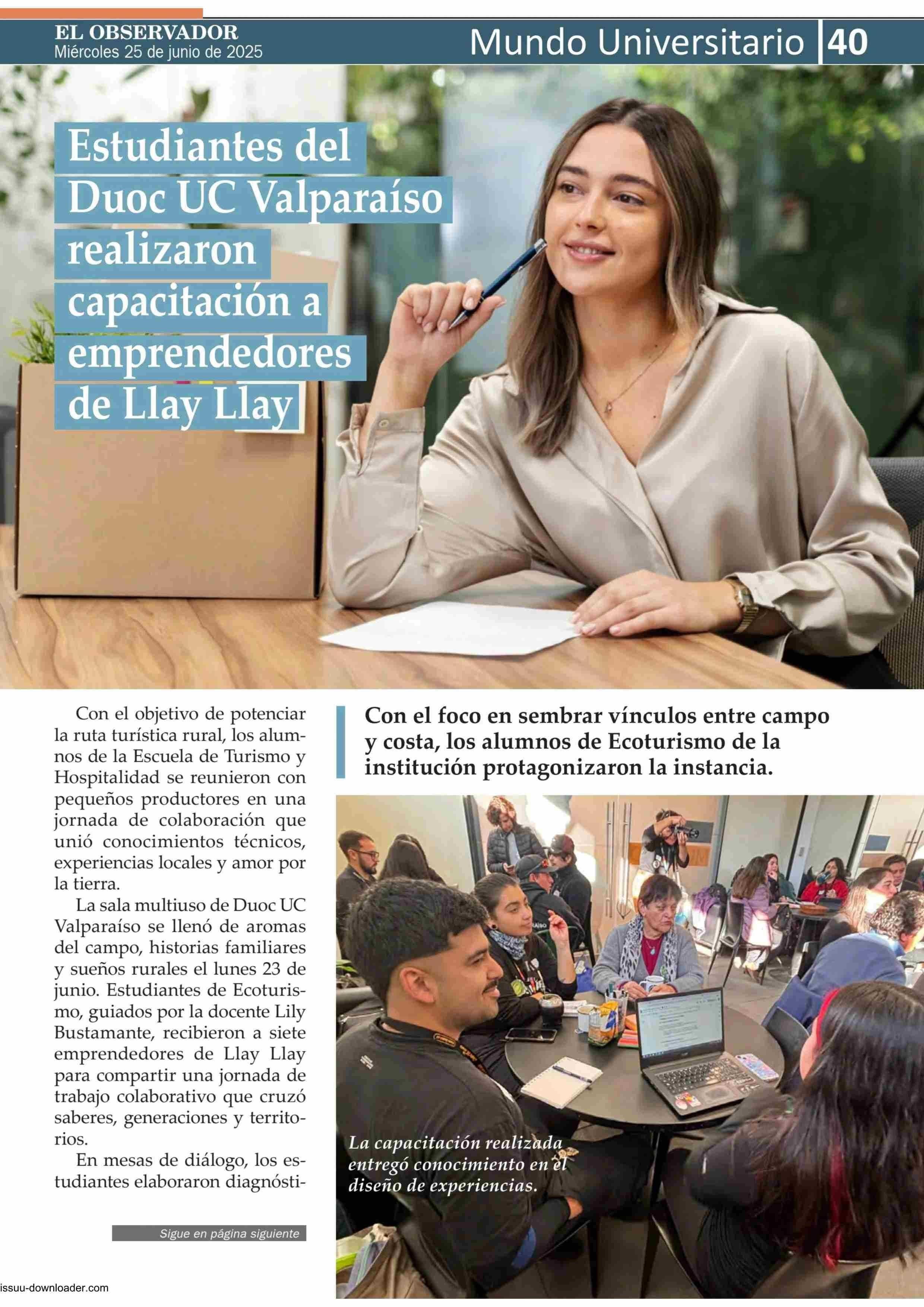 Estudiantes del Duoc UC Valparaiso realizaron capacitación a emprendedores de Llay Llay 25-06-2025 El Observador |