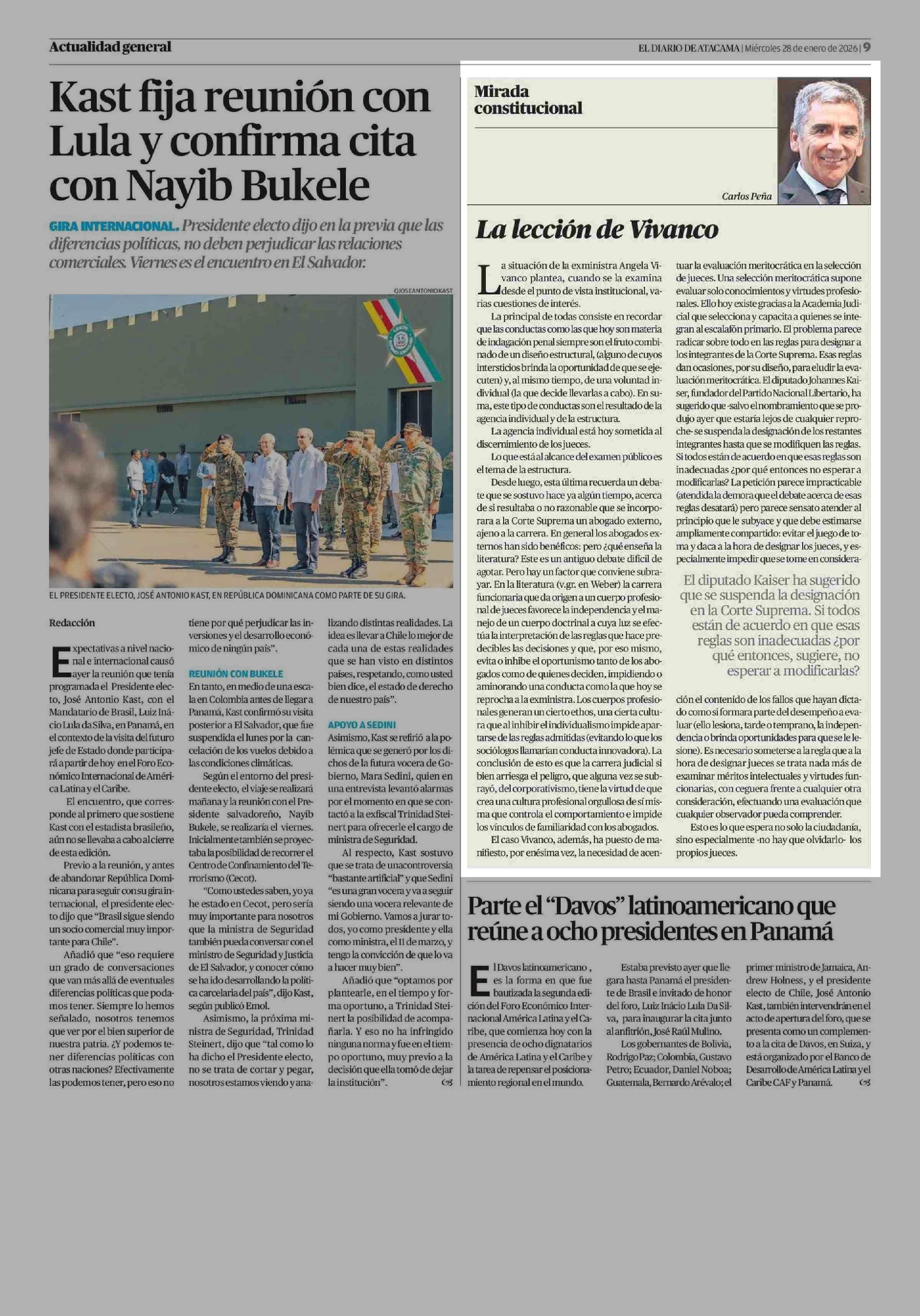 Columnas de Opinión: La lección de Vivanco 28-01-2026 El Diario de Atacama |