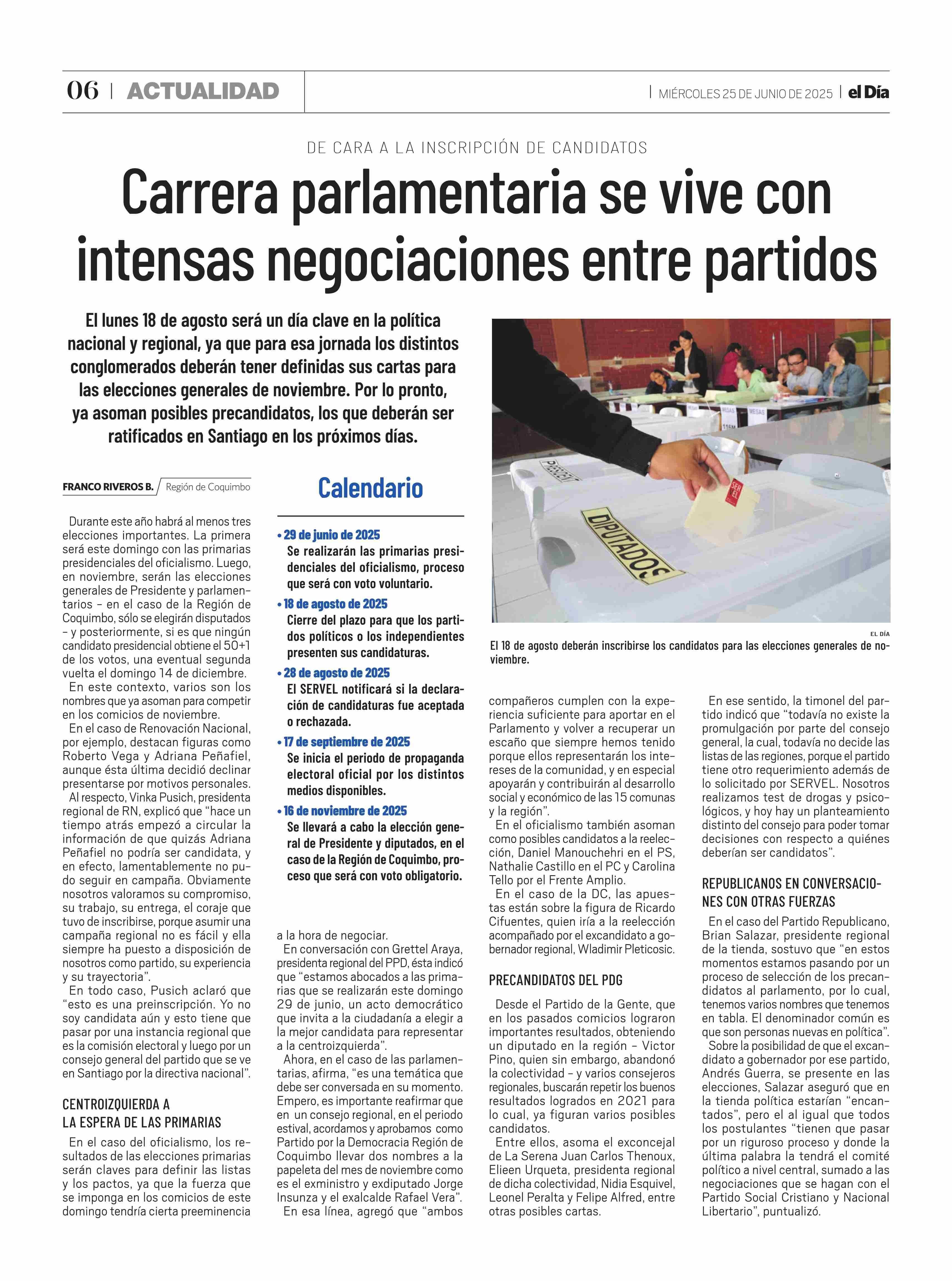Carrera parlamentaria se vive con intensas negociaciones entre partidos 25-06-2025 El Día |