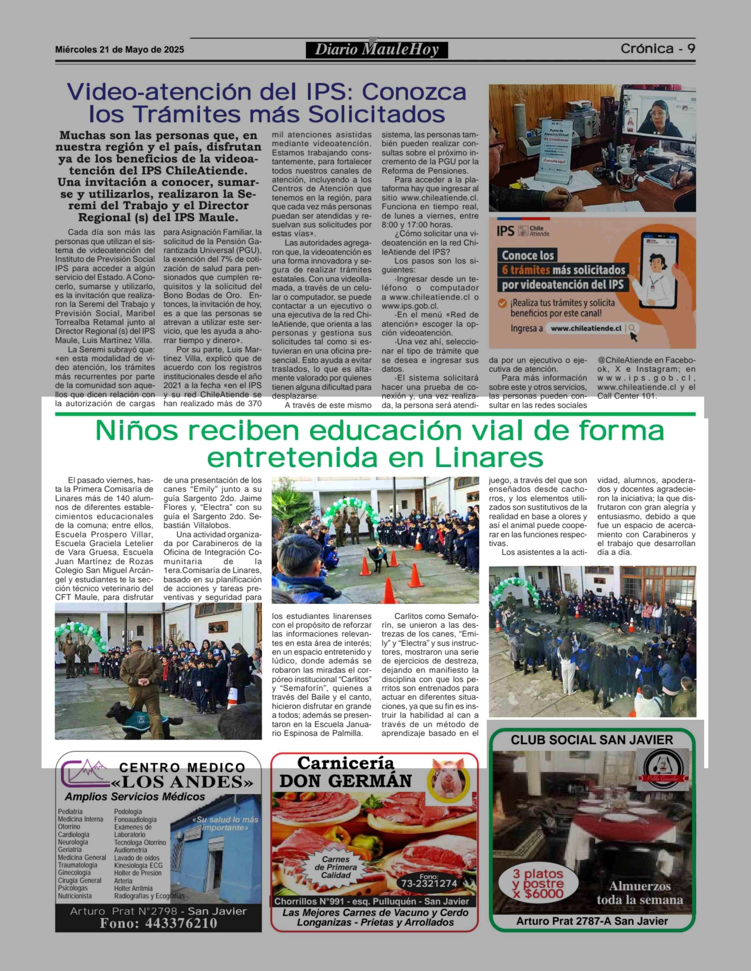 Fecha: 21-05-2025 Sector: Noticia general Región: Región del Maule