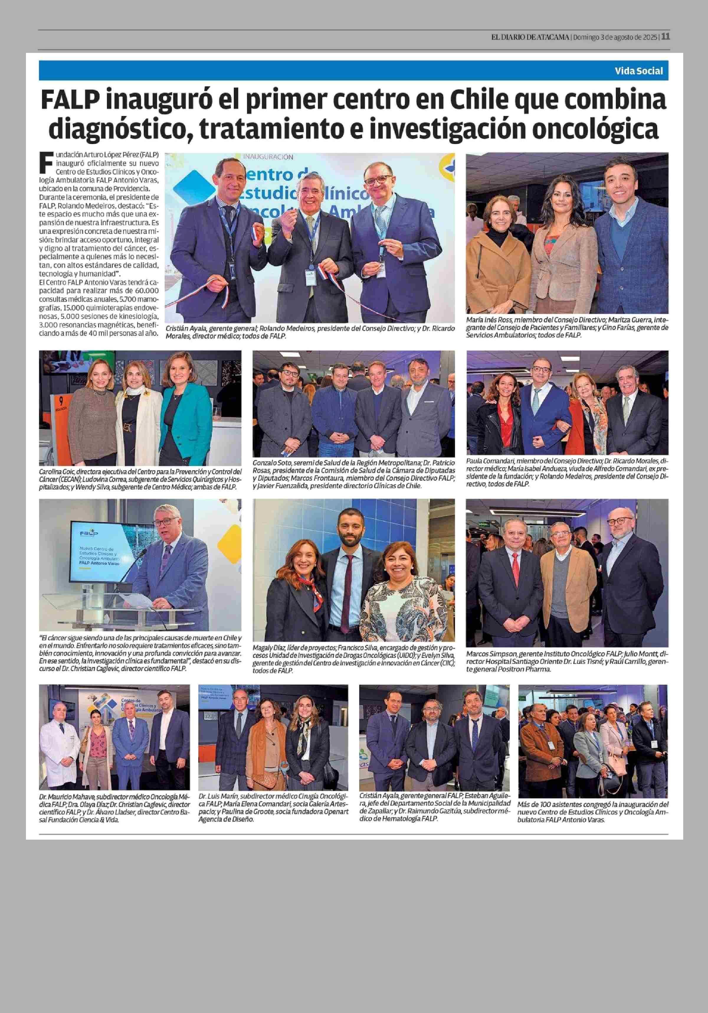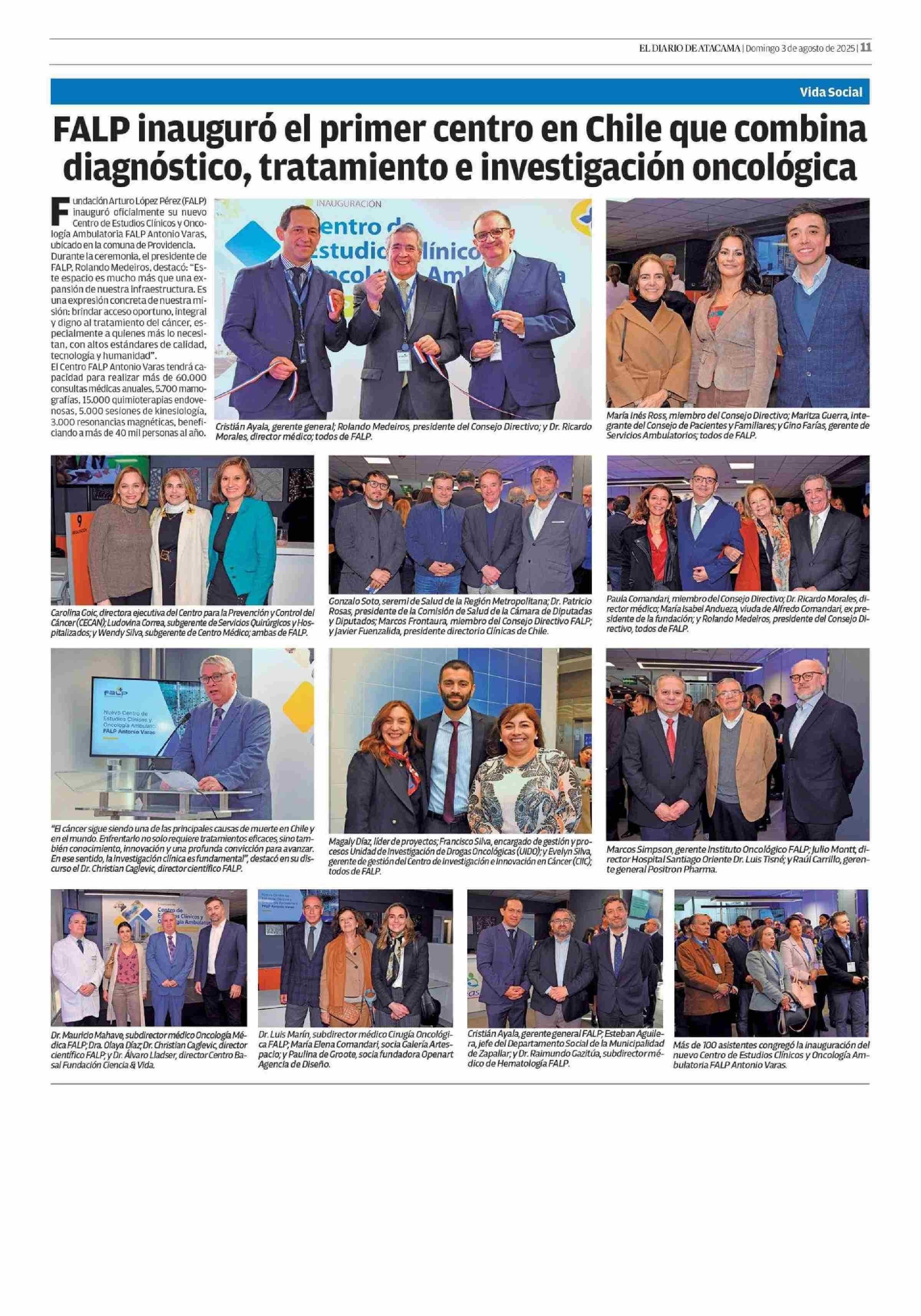 FALP inauguró el primer centro en Chile que combina diagnóstico, tratamiento e investigación oncológica 03-08-2025 El Diario de Atacama |