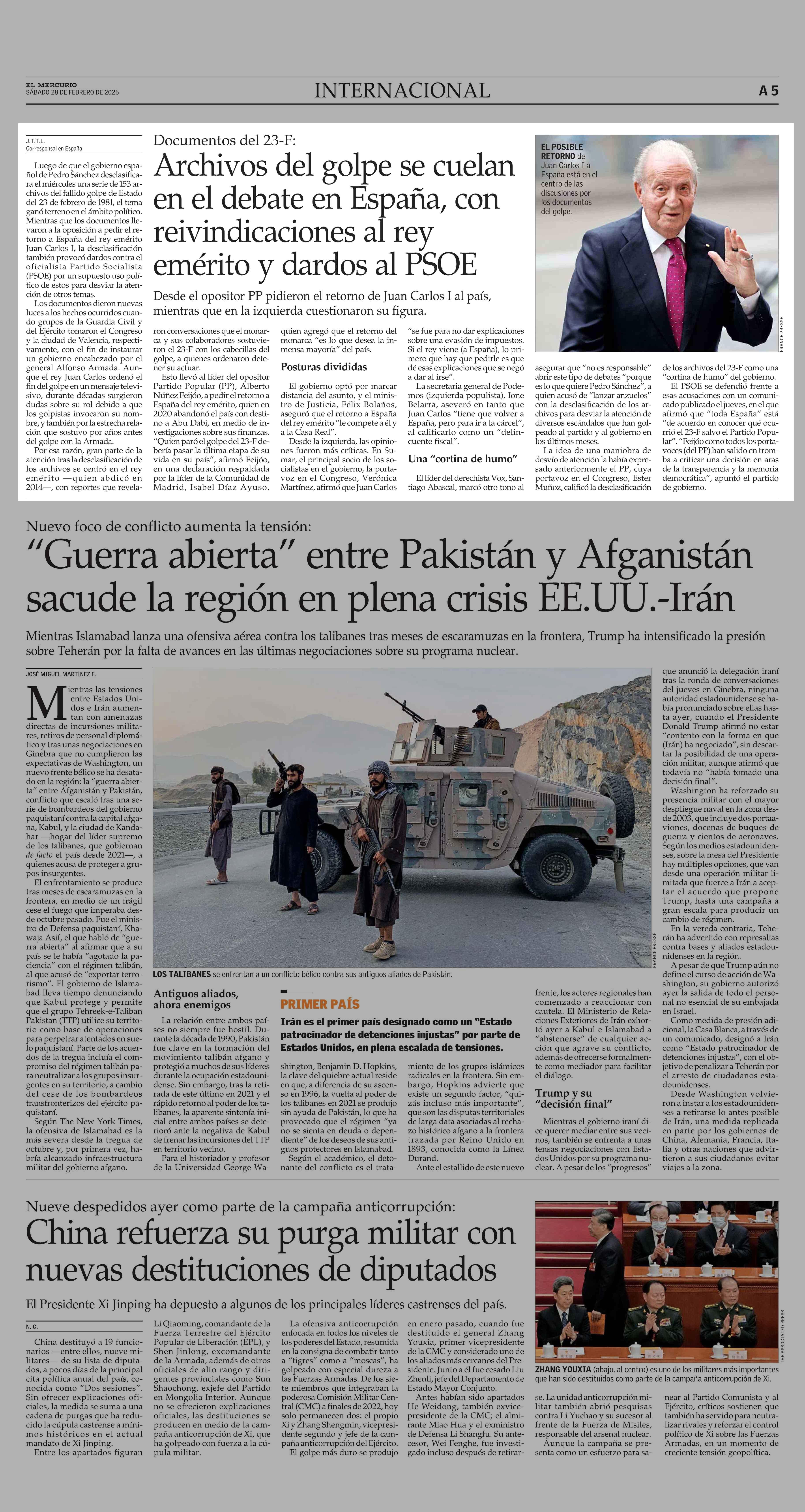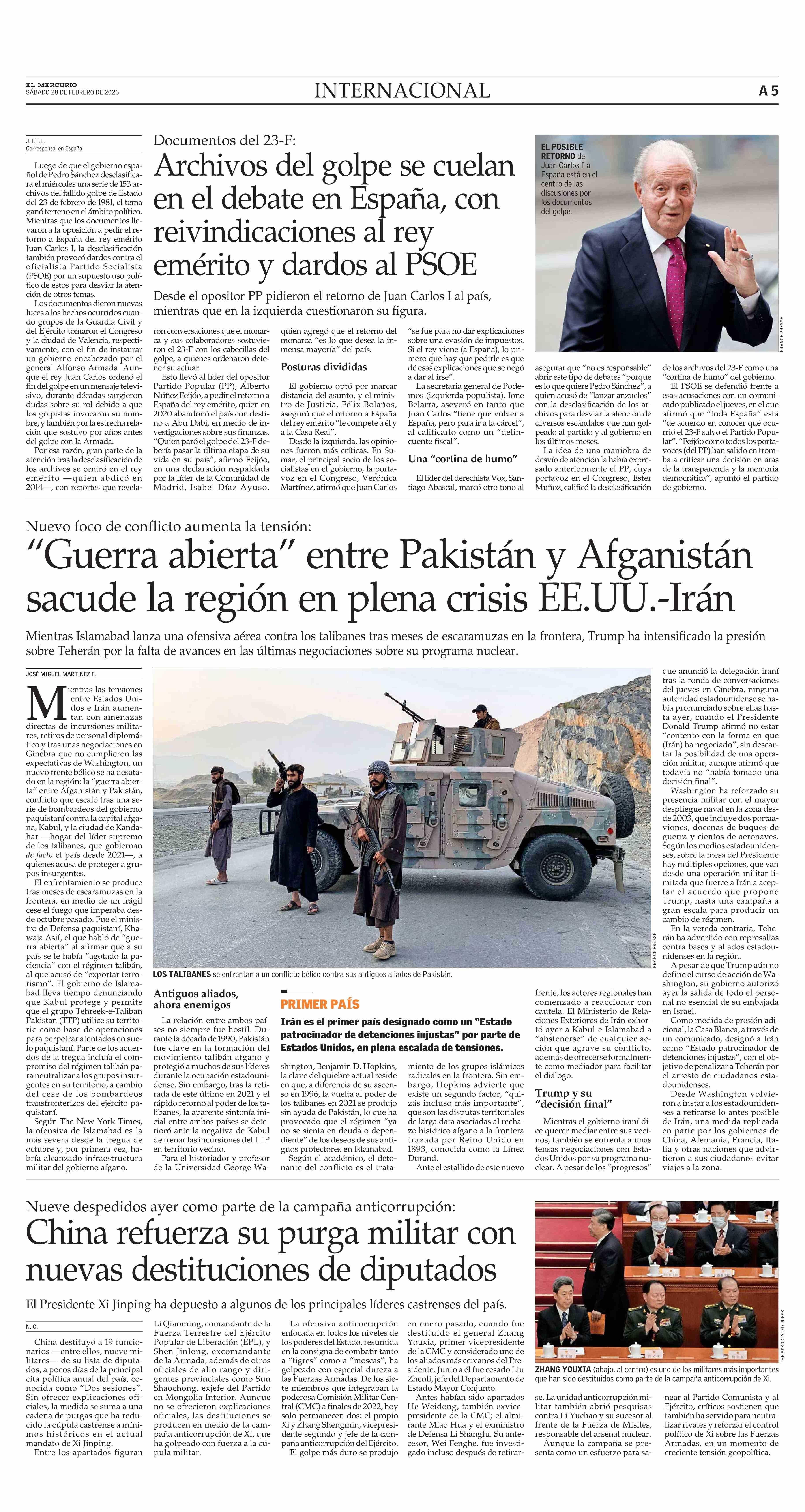 Archivos del golpe se cuelan en el debate en España, con reivindicaciones al rey emérito y dardos al PSOE 28-02-2026 El Mercurio |