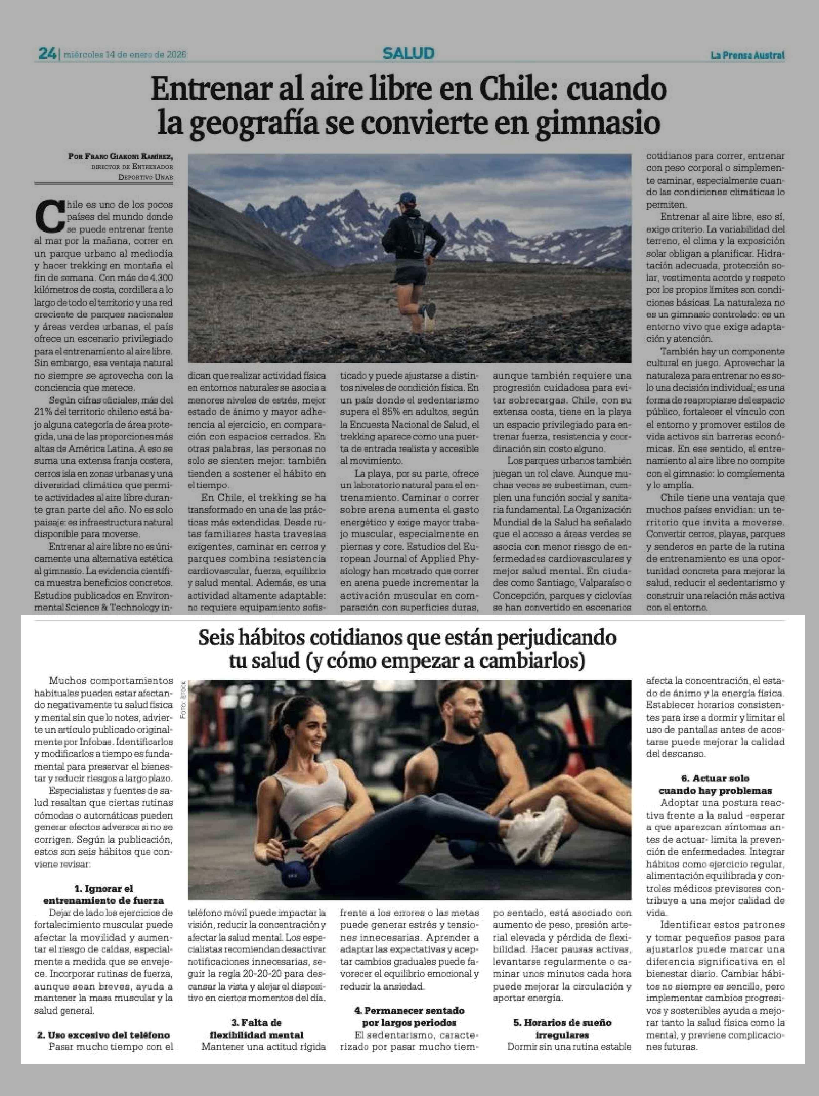 Seis hábitos cotidianos que están perjudicando tu salud (y cómo empezar a cambiarlos) 14-01-2026 La Prensa Austral |